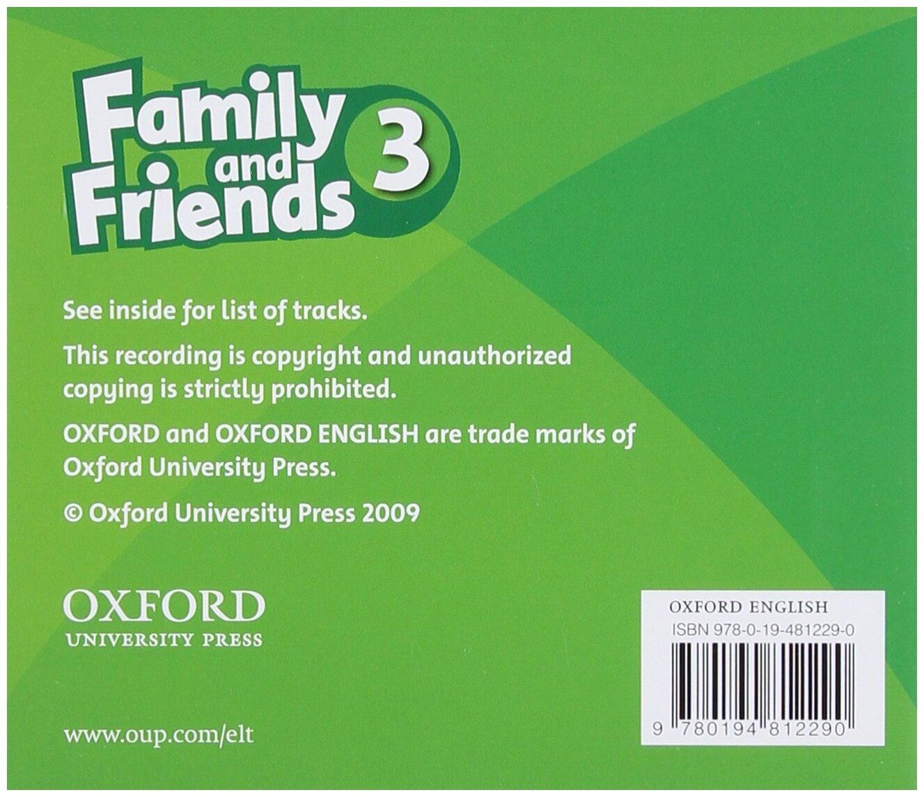 Family and Friends содержит уникальную методику обучения грамматике и формирования основных языковых навыков, а также задания на постановку правильного английского произношения и на всестороннюю проверку знаний, в т. ч. раннюю подготовку к ОГЭ, ЕГЭ и Международным экзаменам. Учебное пособие в равной степени подходит для обучения детей с различным типом восприятия: визуальным, аудиальным и кинестетическим.Ключевыми преимуществами учебного пособия являются: эффективный метод освоения грамоты для детей, впервые знакомящихся с латинским алфавитом; наилучшая для детского восприятия игровая форма обучения речевым навыкам; развитие социальных компетентностей: отзывчивости, готовности помочь, чувства благодарности и ответственности; упражнения, основанные на методе физического реагирования (TPR – Total Physical Response) в виде песен, игр, инсценировок.Дополнительное пособие по грамматике Grammar Friends для каждого уровня.Адаптированные книги для чтения для каждого уровня.Ресурсы Family and Friends Student's Site - песни и интерактивные упражнения в онлайн-формате.Oxfordparents - поддержка ресурсами заинтересованных родителей на Family and Friends is a seven-level primary course which offers you an exceptionally strong skills training programme covering language, phonics, and civic education. The exceptionally strong skills training programme includes a focus on real speaking and writing output. Plus - the integrated print and digital resources suit all teaching situations and learner types, supporting students, teachers, and parents. Use it with Little Friends and First Friends to make it an eight or nine-year course.Key Features:Exceptionally strong skills training programmeIntegrated print and digital resourcesStep by step phonics programmeTesting resources - including Cambridge Young Learners English Tests and Trinity Examinations practice papersValues syllabus - social and emotional skillsSongs and interactive exercises on the Student's SiteАудио CD-диски к учебнику Family and Friends 3.