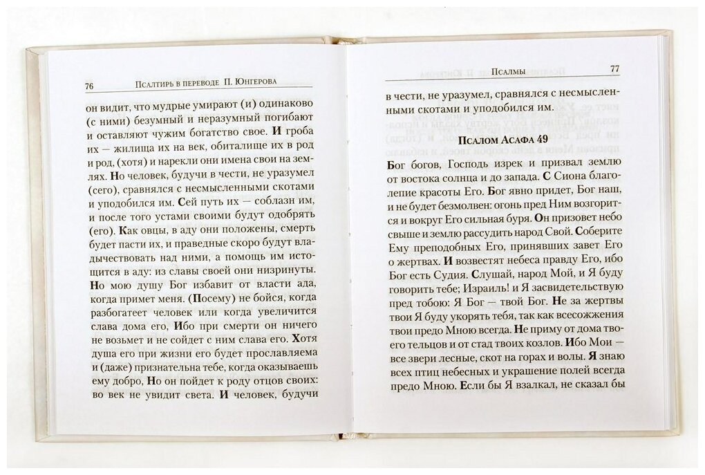 Настоящее издание представляет собой Псалтирь святого пророка и царя Давида, одну из важнейших для православного богослужения книг Ветхого Завета, переведенную на русский язык. Особенностью издания является то, что русский перевод Псалтири сделан не по Масоретскому тексту (как в основном Синодальном издании Библии), а выполнен по "Септуагинте" известным библеистом, профессором Казанской духовной академии П.?А? Юнгеровым (1856–1921) в 1915 году