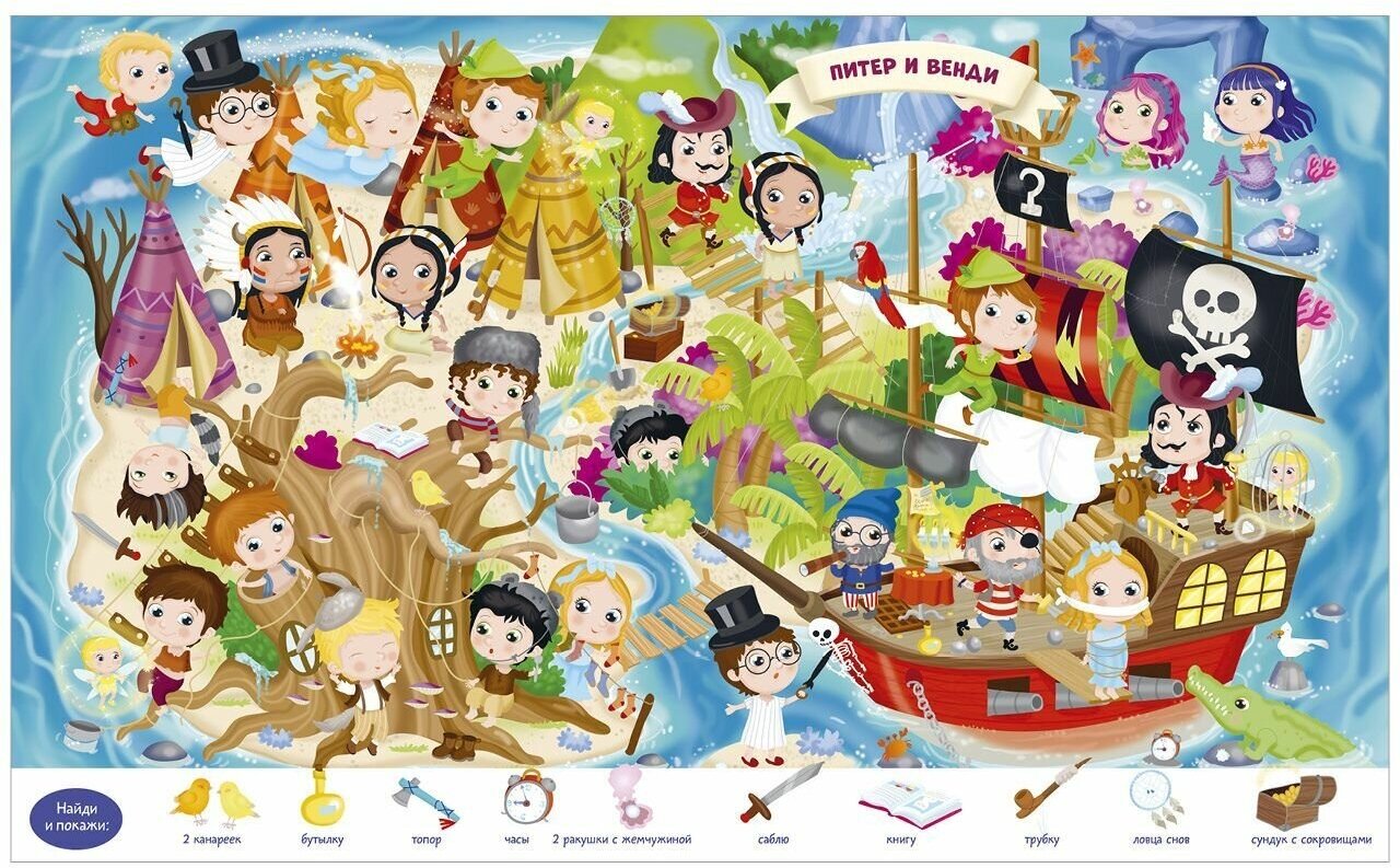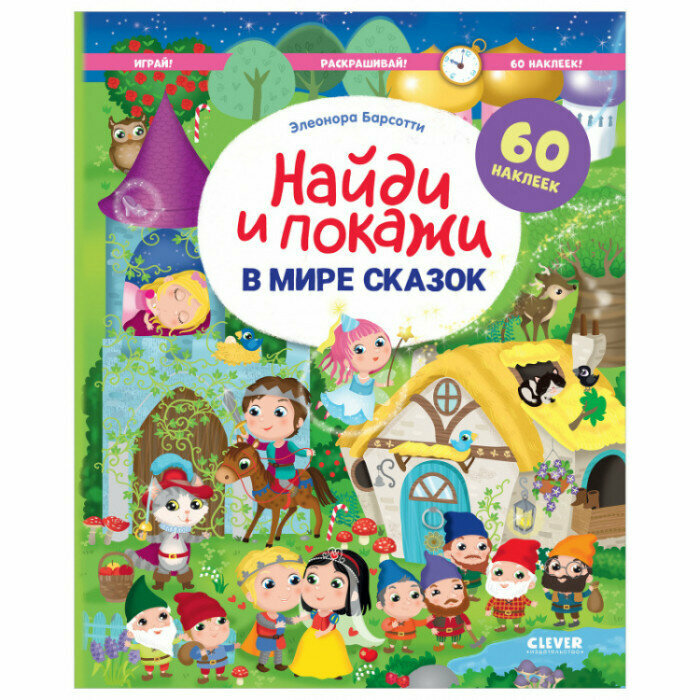 Увлекательная детская игра "найди и покажи" по сюжетам любимых сказок! Золушка, Три Поросёнка, Красная Шапочка и другие очаровательные герои приглашают отправиться в волшебный мир сказки. В этой книге можно не только разглядывать сюжетные подробные иллюстрации, но и играть, раскрашивать и дополнять сценки наклейками!
