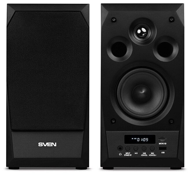 Продукция компании Sven уже давно зарекомендовала себя с наилучшей стороны как в среде меломанов, так и рядовых пользователей. Акустические системы, выпускаемые данной компанией, могут похвастаться не только безупречным качеством исполнения, но и стильным внешним видом. Наглядным подтверждением всего вышесказанного служит Sven . Данная 2-канальная модель прекрасно впишется в любой современный интерьер и станет достойным его дополнением. Выполнена она из MDF и обладает пиковой мощностью в 50 Вт.