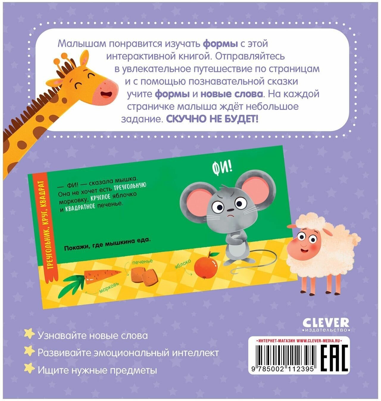 Малышам понравится изучать формы с этой интерактивной книгой. Отправляйтесь в увлекательное путешествие по страницам и с помощью познавательной сказки учите формы и новые слова. На каждой страничке малыша ждёт небольшое задание.Скучно не будет! - Узнавайте новые слова; - Развивайте эмоциональный интеллект; - Ищите нужные предметы.