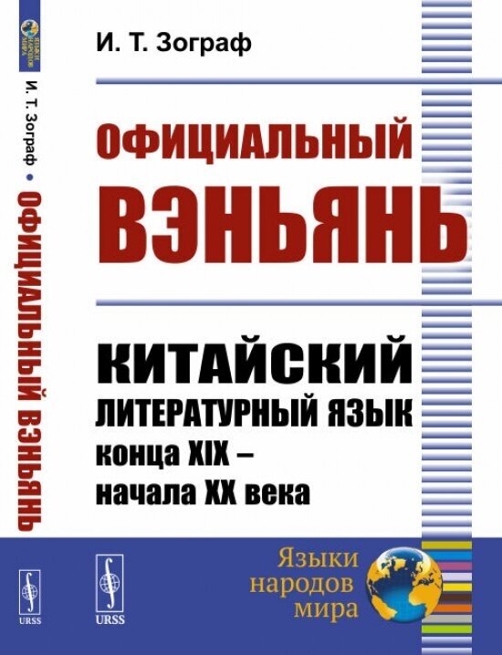 Вниманию читателей предлагается книга доктора филологических наук И. Т. Зограф, в которой характеризуется китайский литературный язык вэньянь конца XIX - начала XX века; его особенности рассматриваются в сопоставлении с классическим древнекитайским языком. В данной работе вэньянь впервые стал предметом специального научного рассмотрения. Книга состоит из двух частей: первая часть посвящена синтаксису вэньяня, вторая - служебным и полуслужебным словам. В книге используется русская транскрипция, отражающая чтение иероглифов в современном пекинском произношении. Книга, входящая в серию исследований автора по исторической грамматике китайского языка, будет полезна не только специалистам --- филологам, востоковедам, историкам языка, но и всем, кто интересуется китайским языком.