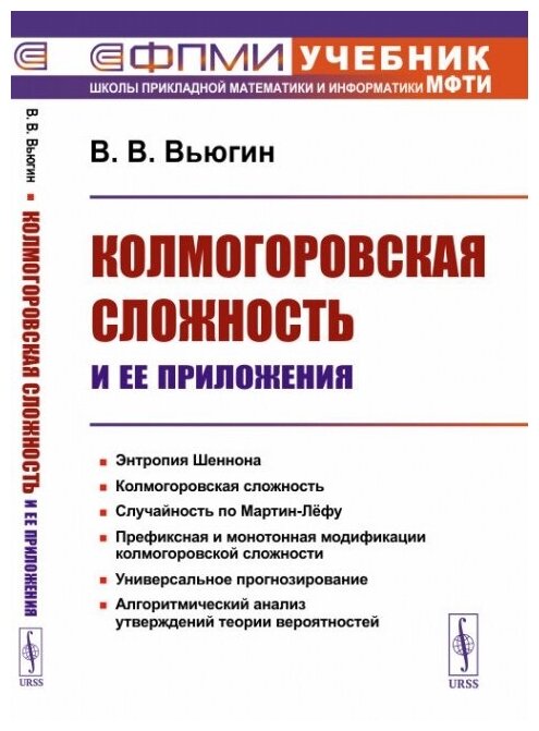 Книга предназначена для первоначального знакомства с основами теории колмогоровской сложности и алгоритмической случайности. В первой части приводятся элементы шенноновской теории информации и кодирования. Во второй части приведены основные понятия и теоремы колмогоровского подхода к обоснованию теории вероятностей и теории информации на основе теории алгоритмов. Вводятся и изучаются понятия различных видов колмогоровской сложности: простая, префиксная, монотонная сложности, рассматривается соответствующее двойственное понятие - априорная полумера. Приводится определение случайной но Мартин-Лёфу бесконечной последовательности, изучены эквивалентные определения с помощью колмогоровской сложности. Рассматриваются вопросы универсального прогнозирования. Третья часть содержит более сложные результаты, развивающие колмогоровский подход к обоснованию теории вероятностей. Книга рассчитана на студентов и аспирантов математических и прикладных математических специальностей.