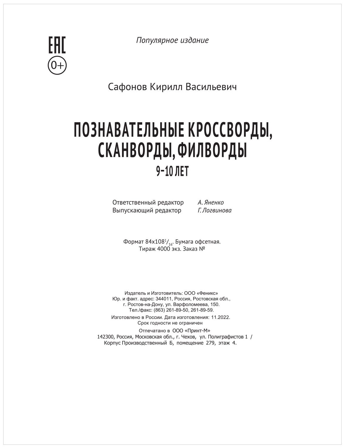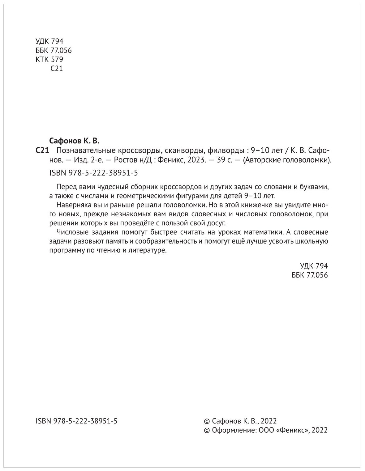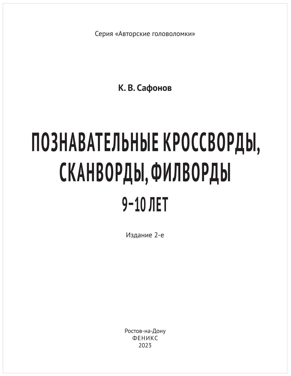 Книга Познавательные кроссворды сканворды филворды: 9-10 лет. 2-е изд (Сафонов Константин Владимирович), 2023