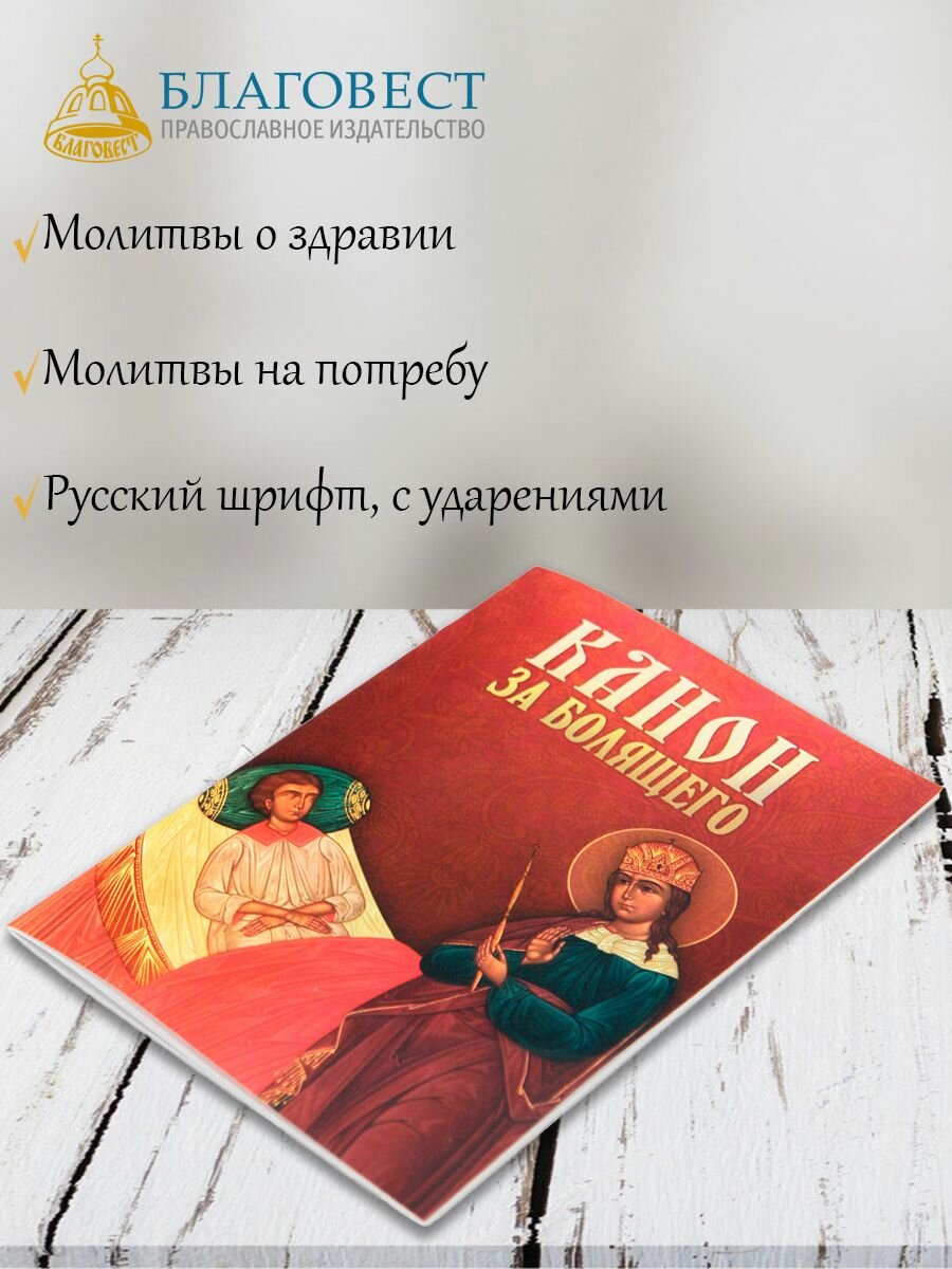 Данное издание предлагает православному читателю канон за болящего. Шрифт — русский, с ударениями. Человек нередко сталкивается с болезнями близких людей и с осознанием, что кроме искреннего участия, сострадания, поддержки он не в силах облегчить болезнь… И вот тогда христианин прибегает к помощи Божией, направляя и участие, и сострадание, и поддержку в горячую молитву за болящего.