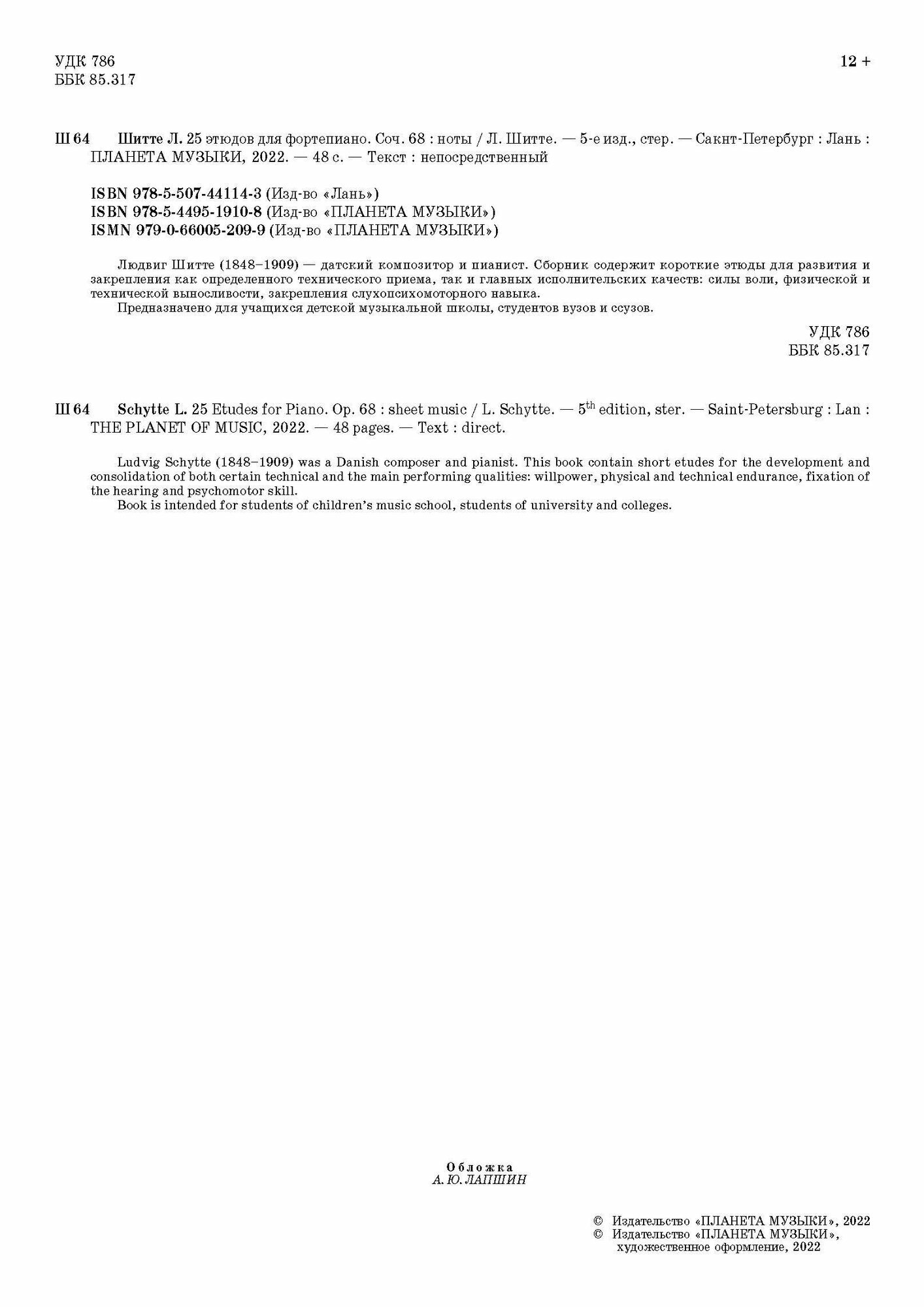 Книга 25 этюдов для фортепиано. Соч. 68 (Шитте Людвиг); Лань, 2020