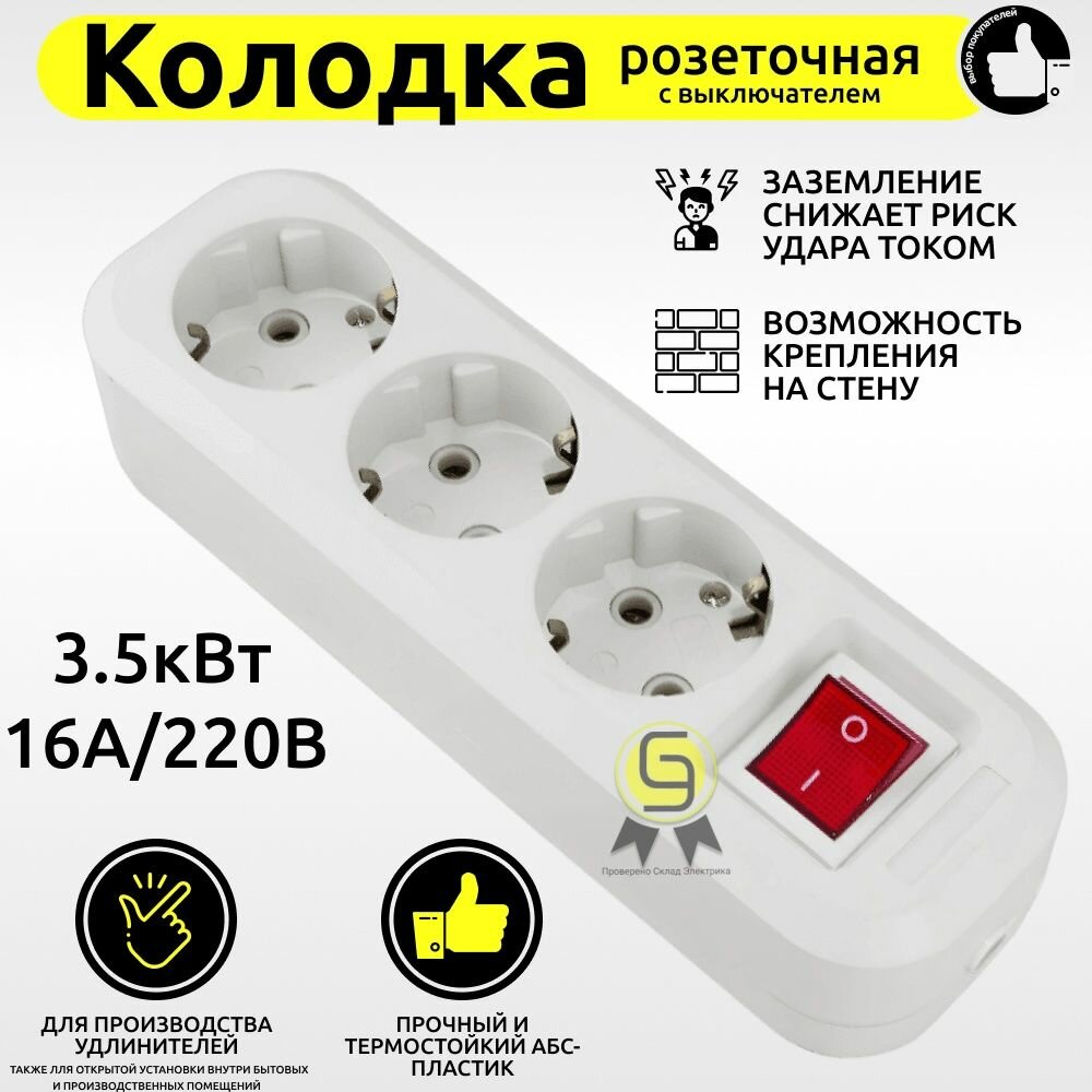 На сегодняшний день товар «Колодка 3 гнезда с заземлением с выключателем TDM Electric» можно купить с кешбеком в 1 магазине: Яндекс.Маркет