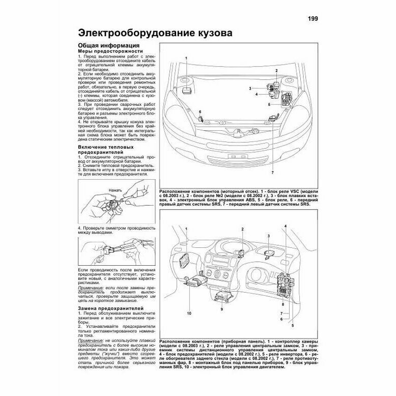 В руководстве дается пошаговое описание процедур по эксплуатации, ремонту и техническому обслуживанию переднеприводных и полноприводных автомобилей Toyota FunCargo 1999-2005 гг. выпуска, оборудованных бензиновыми двигателями 1NZ-FE (1,5 л) и 2NZ-FE (1,3 л). Издание содержит руководство по эксплуатации, подробные сведения по техническому обслуживанию автомобиля, диагностике, ремонту и регулировке систем двигателя (в т.ч. системы впрыска топлива, системы изменения фаз газораспределения (VVT-i), системы зажигания, запуска и зарядки), автоматических коробок передач, элементов тормозной системы (включая антиблокировочную систему тормозов (ABS), противобуксовочную систему (TRC), систему курсовой устойчивости (VSC)), рулевого управления, подвески, кузовных элементов, систем кондиционирования и вентиляции (AC), системы пассивной безопасности (SRS). Приведены инструкции по диагностике 8 электронных систем: системы… управления двигателем, АКПП, систем улучшения управляемости автомобиля (ABS, TRC, VSC), SRS, MultiVision, аудиосистемой.