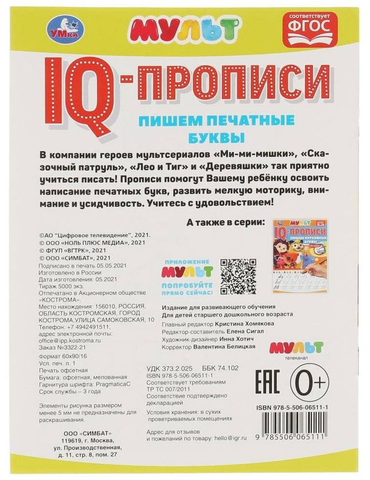 На сегодняшний день товар «Книга: Книга Пишем печатные буквы. IQ-прописи. Мультмикс. 145х195 мм. 16 стр. Умка в кор.50шт (без автора), 2021» можно купить с кешбеком в 1 магазине: Яндекс.Маркет