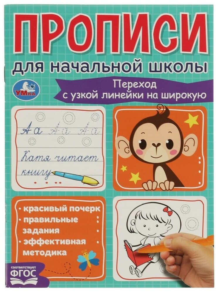 Прописи для начальной школы «Переход с узкой линейки на широкую» ТМ «УМка» - отличный помощник в учёбе для младшего школьника:- соответствует ФГОС- красивый почерк- правильные задания- эффективная методика- компактный размерНа страницах этой тетради ребёнка ожидают занимательные упражнения, которые помогут ему потренировать написание букв и слов в узкой линейке. Формат в виде игр сделают занятия интересными, а маленький любознайка без труда научится правильно держать ручку и потренирует руку к письму.Игровые занятия с прописями ТМ «УМка» способствуют развитию:- мелкой моторики рук- памяти- внимания- усидчивостиОбъём: 16 стр. Формат: 145 х 195 мм.Материал: офсетная бумага.Рекомендовано детям младшего школьного возраста.