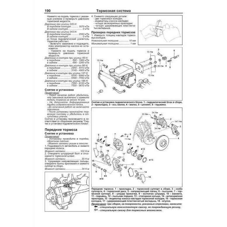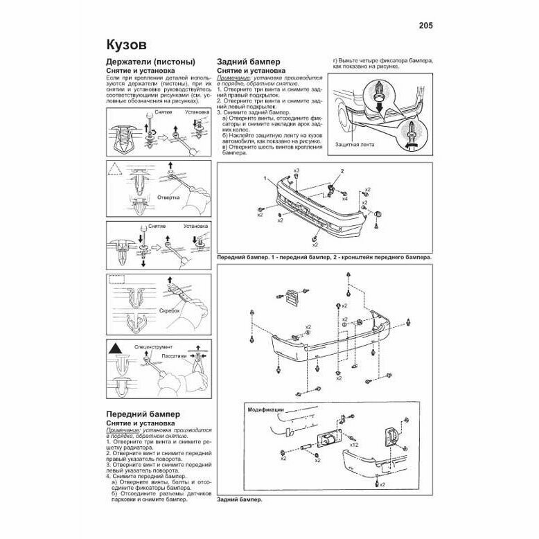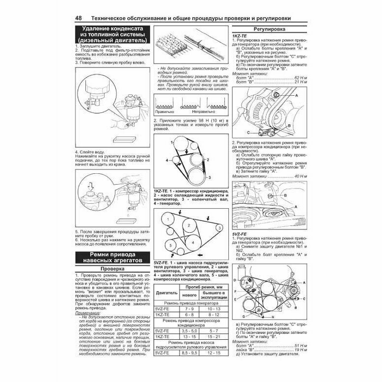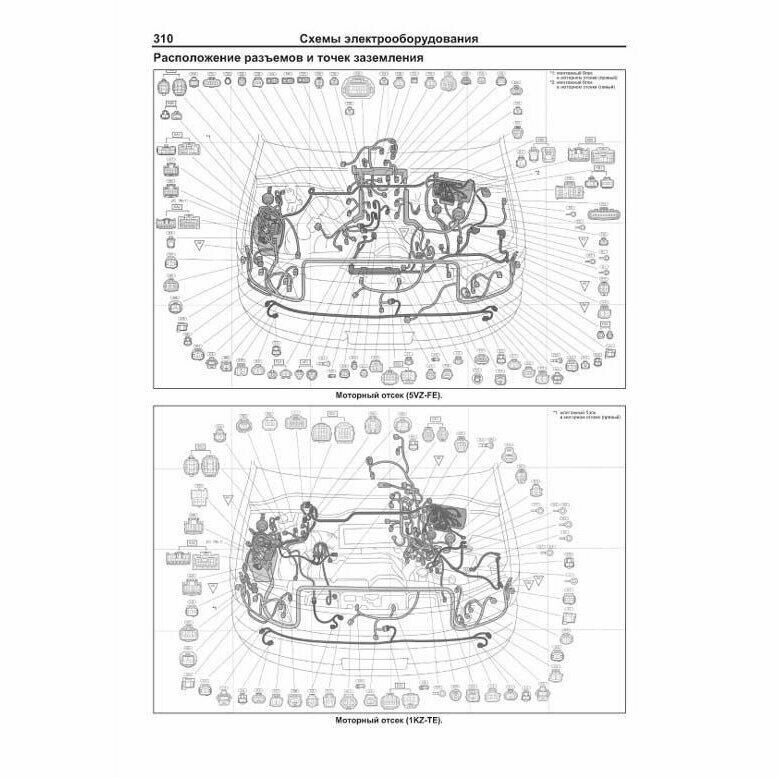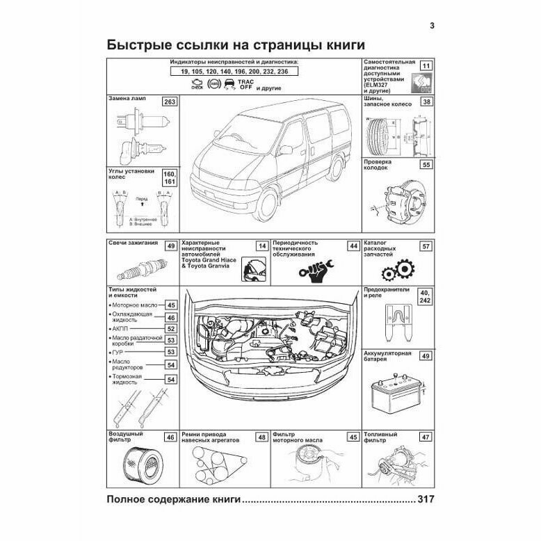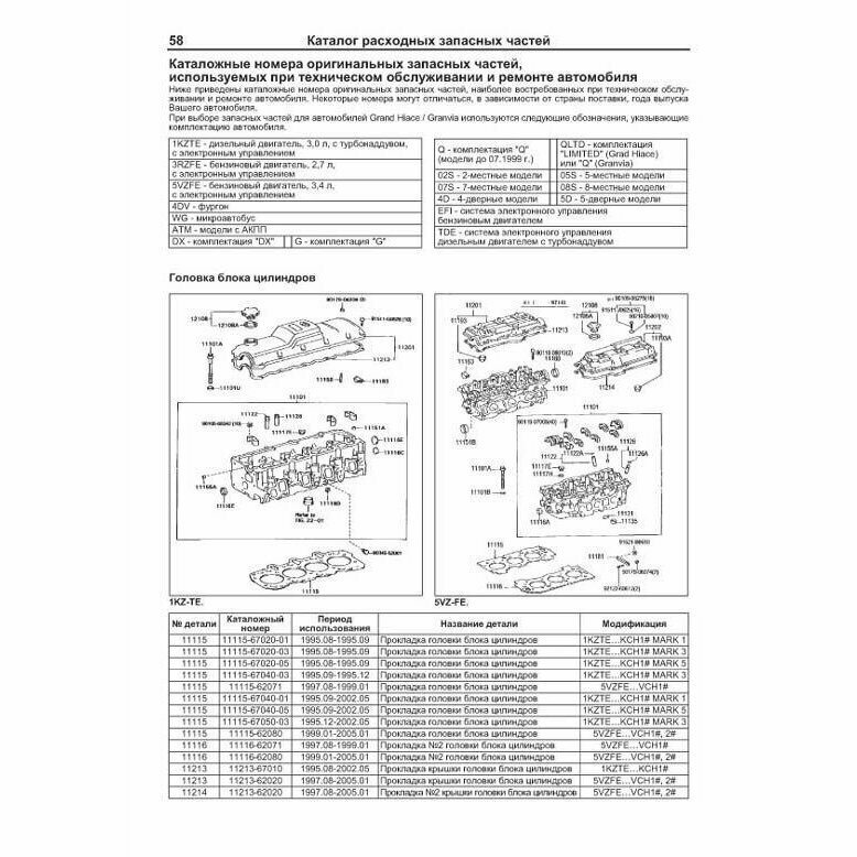 В руководстве дается пошаговое описание процедур по эксплуатации, ремонту и техническому обслуживанию автомобилей Toyota Grand Hiace / Granvia 1995-2005 гг. выпуска, оборудованных дизельным 1KZ-TE (3,0 л) и бензиновым Z-FE (3,4 л) двигателями. Издание содержит руководство по эксплуатации, подробные сведения по техническому обслуживанию автомобилей, агностике, ремонту и регулировке элементов систем двигателя (в т.ч. систем управления бензиновым и дизельным двигателями, топливной системы дизельных двигателей, турбонаддува дизельного двигателя, систему снижения токсичности отработавших газов дизельного двигателя, зажигания, запуска и зарядки), элементов автоматических коробок передач (АКПП), раздаточной коробки, переднего и заднего (в т.ч. с дифференциалом повышенного трения) редукторов, элементов тормозной системы (включая антиблокировочную систему тормозов (ABS), противобуксовочную систему (TRC) и систему курсовой устойчивости (VSC)), рулевого управления, подвески, кузовных элементов, систем кондиционирования и вентиляции. Приведены инструкции по диагностике 10 электронных систем: управления бензиновым и дизельным двигателями, АКПП, ABS, VSC, кондиционером, SRS, дистанционного управления центральным замком, электропривода стеклоподъемников, и системы парковки. Подробно описаны 768 кодов неисправностей Р0, Р1, СО, С1, ВО, В1, Flash, условия их возникновения и возможные причины. Представлены 44 подробные электросхемы (37 систем) для различных вариантов комплектации, описание большинства элементов электрооборудования. Приведены возможные неисправности и методы их устранения, сопрягаемые размеры основных деталей и пределы их допустимого износа, рекомендуемые смазочные материалы, рабочие жидкости и каталожные номера расходных запчастей необходимых для технического обслуживания и наиболее востребованного ремонта, размеры рекомендуемых шин дисков. Представленные характерные неисправности моделей Grand Hiace / Granvia и способы их устранения помогут вам при эксплуатации автомобиля. Книга предназначена для автовладельцев, персонала СТО и ремонтных мастерских.