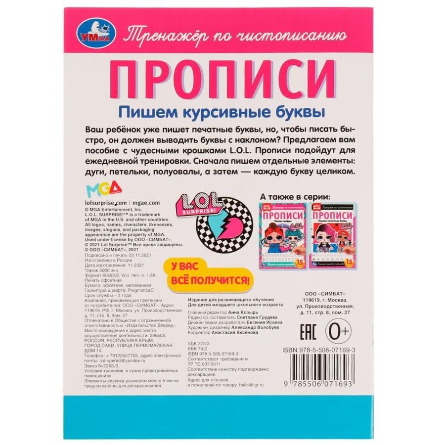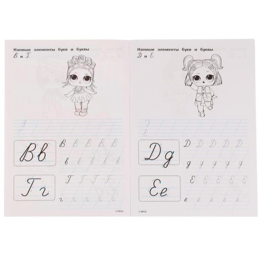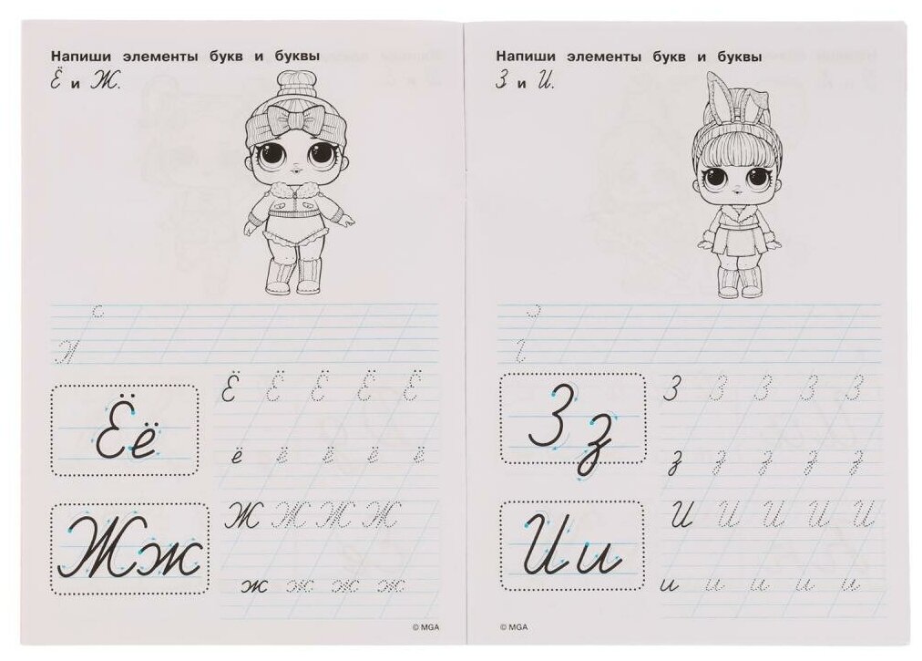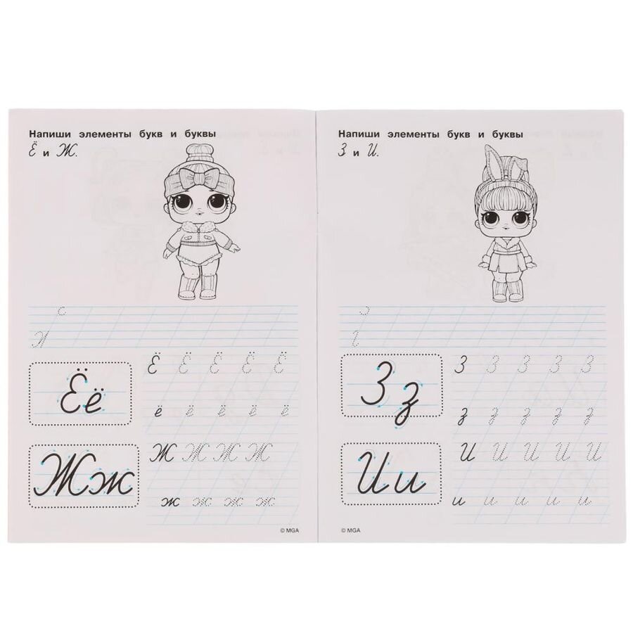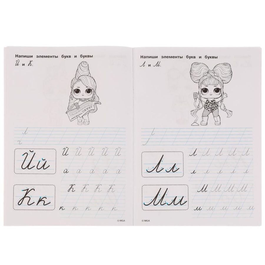 Ваш ребенок уже пишет печатные буквы, но, чтобы писать быстро, он должен выводить буквы с наклоном? Предлагаем вам пособие с чудесными крошками L. O. L. Прописи подойдут для ежедневной тренировки. Сначала пишем отдельные элементы: дуги, петельки, полуовалы, а затем - каждую букву целиком.