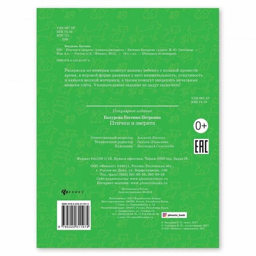 Книга: Книга Птички и Зверята (Бахурова Евгения Петровна); Феникс, 2018