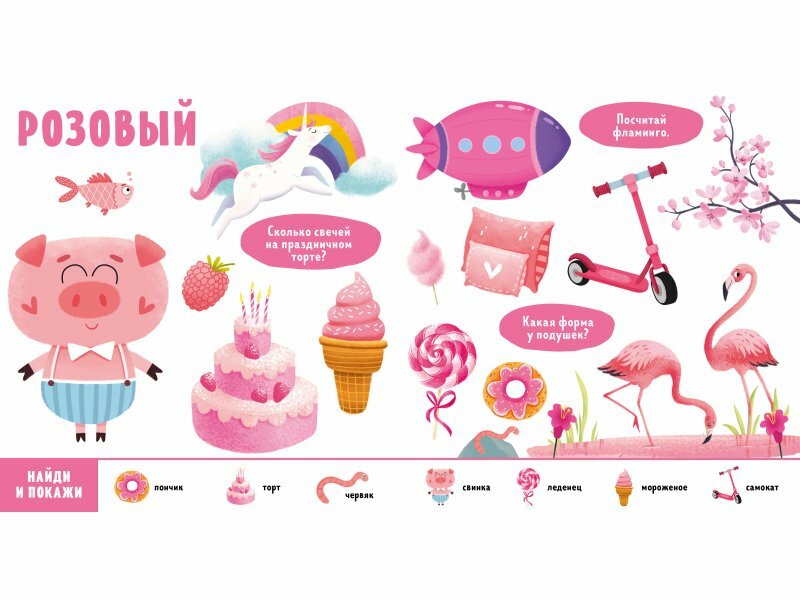 Яркая книжка идеальна для игрового обучения малышей! На каждой страничке ждут знакомство с новыми цветами и оттенками, увлекательные задания на внимательность и любимая игра «найди и покажи». Изучай любимые цвета!