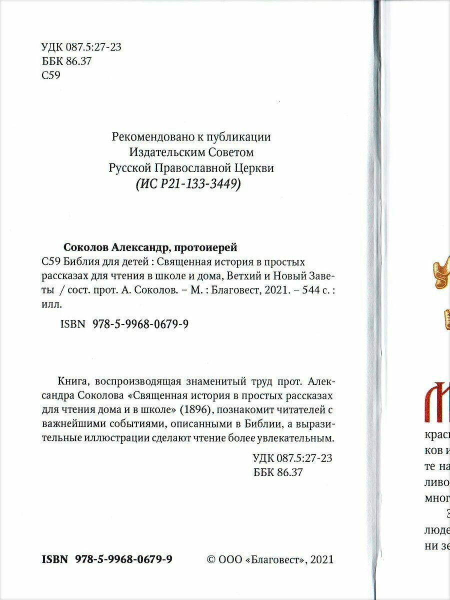 Книга Библия для детей: Священная история в простых рассказах для чтения в школе и дома… (Соколов Александр Александрович), 2021