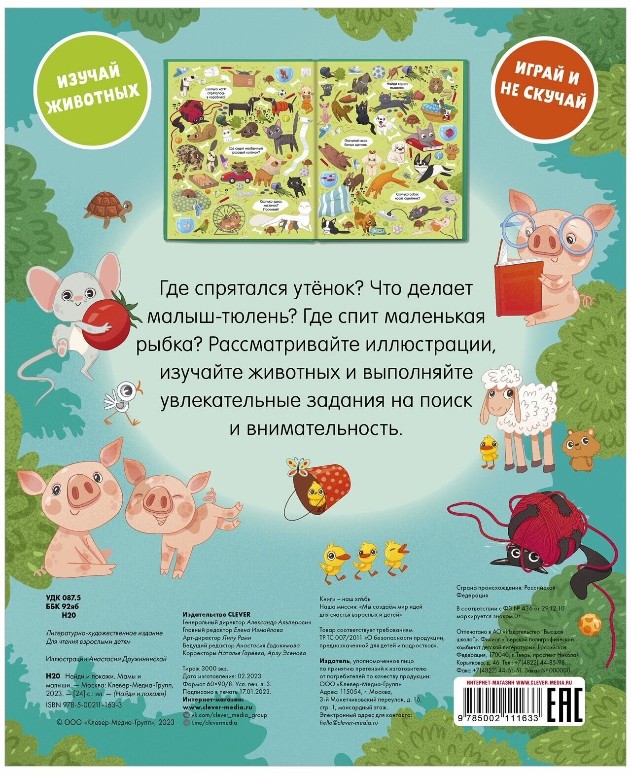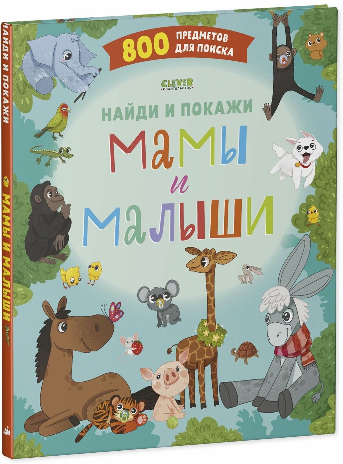 Clever Книга Найди и покажи Мамы и малыши Где спрятался утёнок? Что делает малыш-тюлень? Где спит маленькая рыбка? Рассматривайте иллюстрации, изучайте животных и выполняйте увлекательные задания на поиск и внимательность.