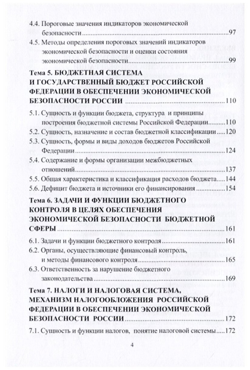 В работу включены положения, отражающие сущность общей теории экономической безопасности, ее уровней (государства, региона, хозяйствующего субъекта и личности); роль и место экономической безопасности в системе национальной безопасности; угрозы, критерии, пороговые значения и методические принципы оценки состояния экономической безопасности; проблемы обеспечения экономической безопасности. Рассмотрены роль и место бюджетной системы и государственного бюджета Российской Федерации, задачи и функции бюджетного контроля в целях обеспечения экономической безопасности бюджетной сферы, налоги и налоговая система, механизм налогообложения Российской Федерации в обеспечении экономической безопасности России, а также механизм налогообложения развитых стран. Для студентов, обучающихся по направлению подготовки "Информационная безопасность" (уровень бакалавриата), специальности "Информационно-аналитические системы безопасности", иным техническим специальностям, а также преподавателей вузов.