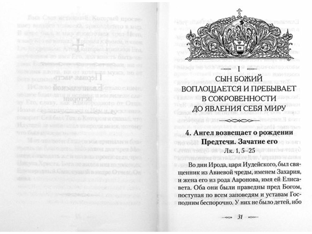 Полное название творения святителя Феофана Затворника - "Евангельская история о Боге Сыне, воплотившемся нашего ради спасения, в последовательном порядке изложенная словами святых евангелистов". "Евангельская история" - один из важнейших истолковательных трудов святителя Феофана, занимающий особое место в русской духовной литературе. Это путеводитель по Святому Евангелию - главной Книге, ведущей ко спасению. Вся земная жизнь Спасителя подробно изложена автором словами святых евангелистов в хронологической последовательности. Каждый может найти здесь описание интересующего его события Евангельской истории по заглавию частей и параграфов, обозначающему их содержание. В обращении к читателям святитель объясняет правила, принятые им для установления порядка евангельских событий. Святитель Феофан считал, что Евангелие нужно не столько толковать, сколько размышлять над ним. Книга будет полезна самому широкому кругу читателей - как тем, кто только воспринимает первые слова Святого Благовествования, так и тем, кто стремится к глубокому познанию Священного Писания и его благодатной силы.