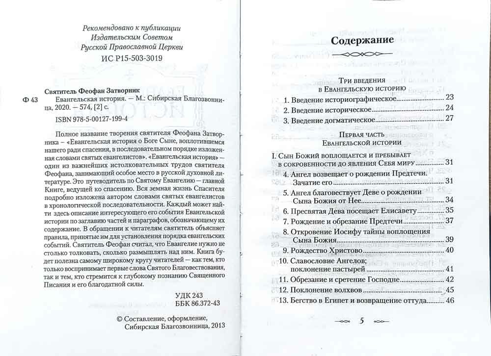 Книга Евангельская история (Святитель Феофан Затворник); Сибирская Благозвонница, 2020