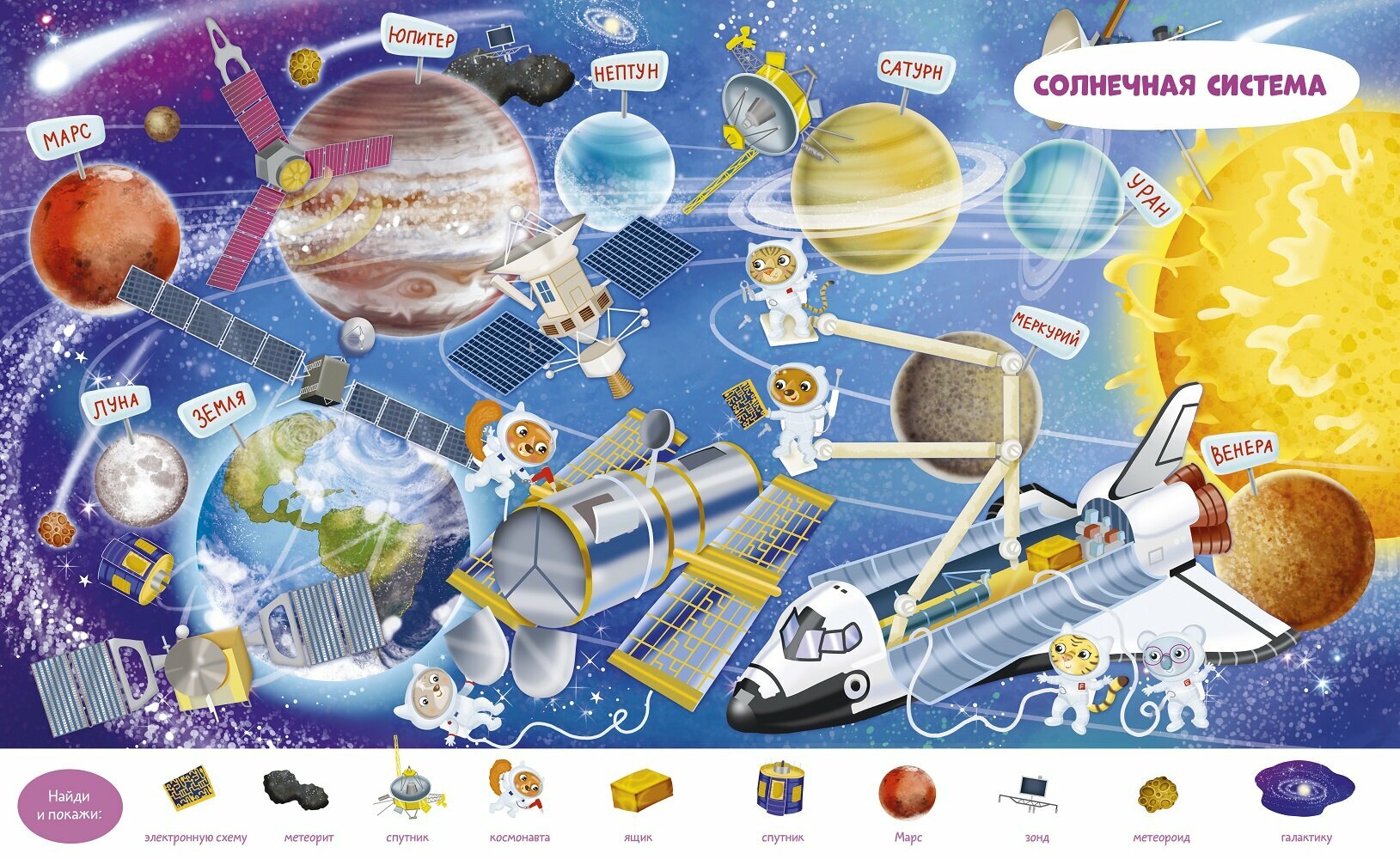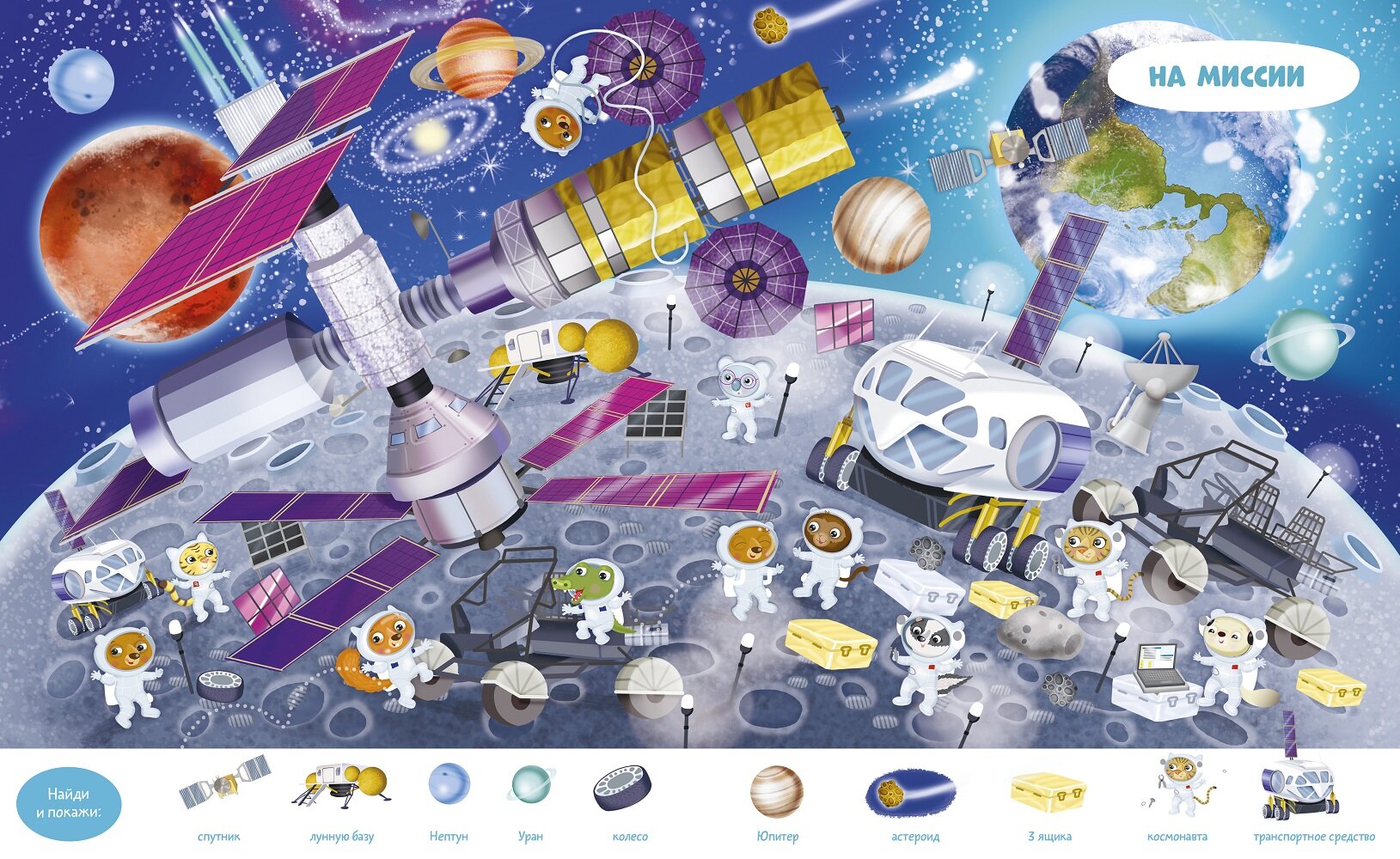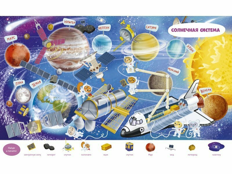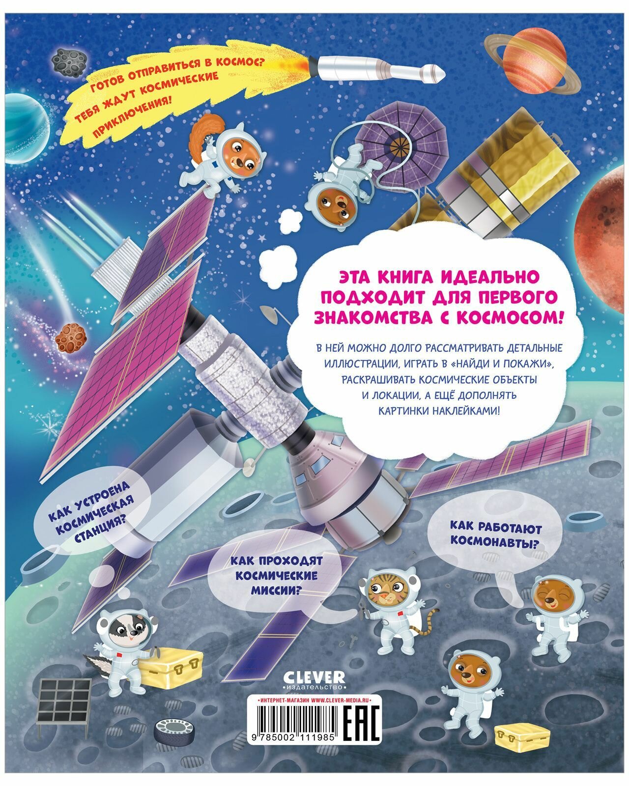 Эта книга идеально подходит для первого знакомства с космосом! В ней можно долго рассматривать детальные иллюстрации, играть в "найди и покажи", раскрашивать космические объекты и локации, а ещё дополнять картинки наклейками! Как устроена космическая станция? Как проходяткосмические миссии? Как работают космонавты?