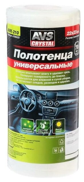 Полотенце универсальное в рулоне. Изделия из нетканого материала. Состав: вискоза, полиэфирное волокно. Размер22*23, 70 листов в одном рулоне. Сделано в России. Отлично впитывают влагу и удаляют грязь, полируют поверхность до блеска.