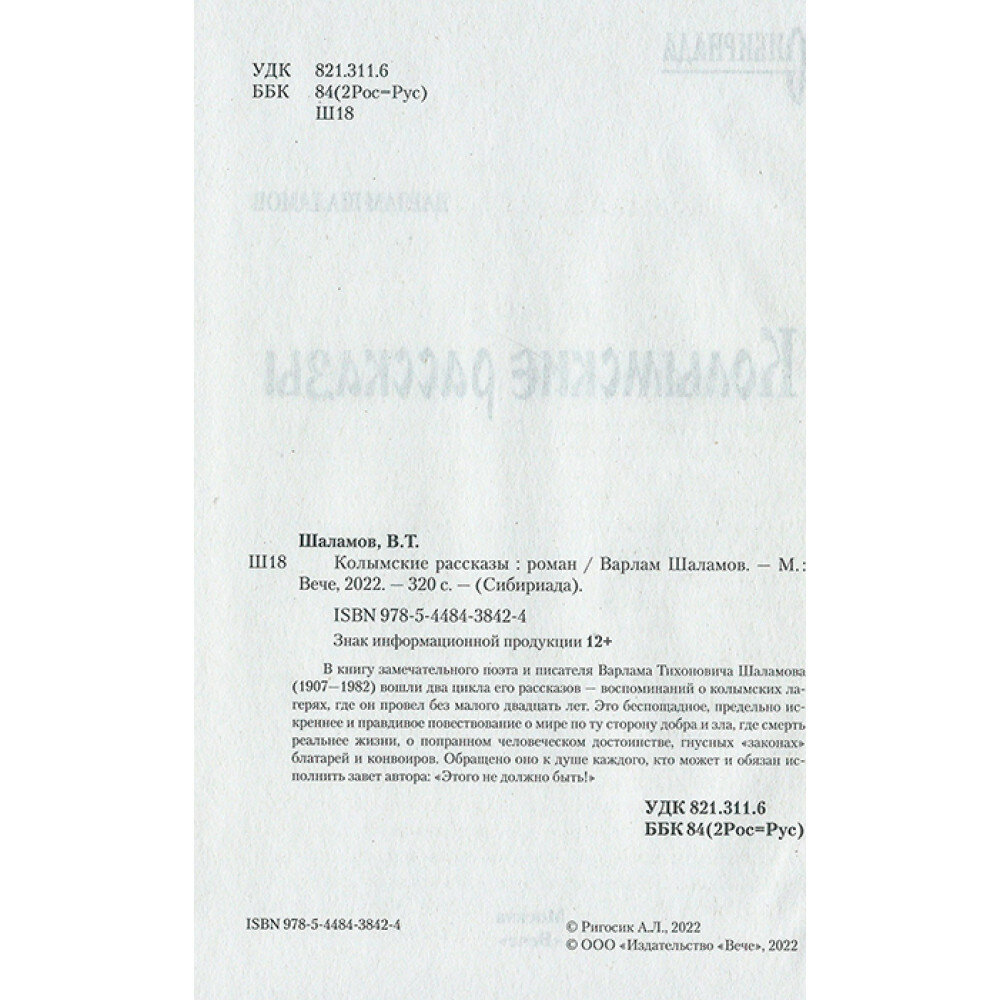 Книга: Книга Колымские рассказы (Варлам Тихонович Шаламов); Вече, 2017