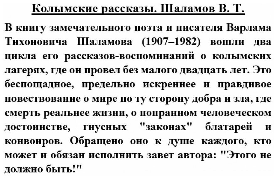 | Автор(ы) | Варлам Тихонович Шаламов |
