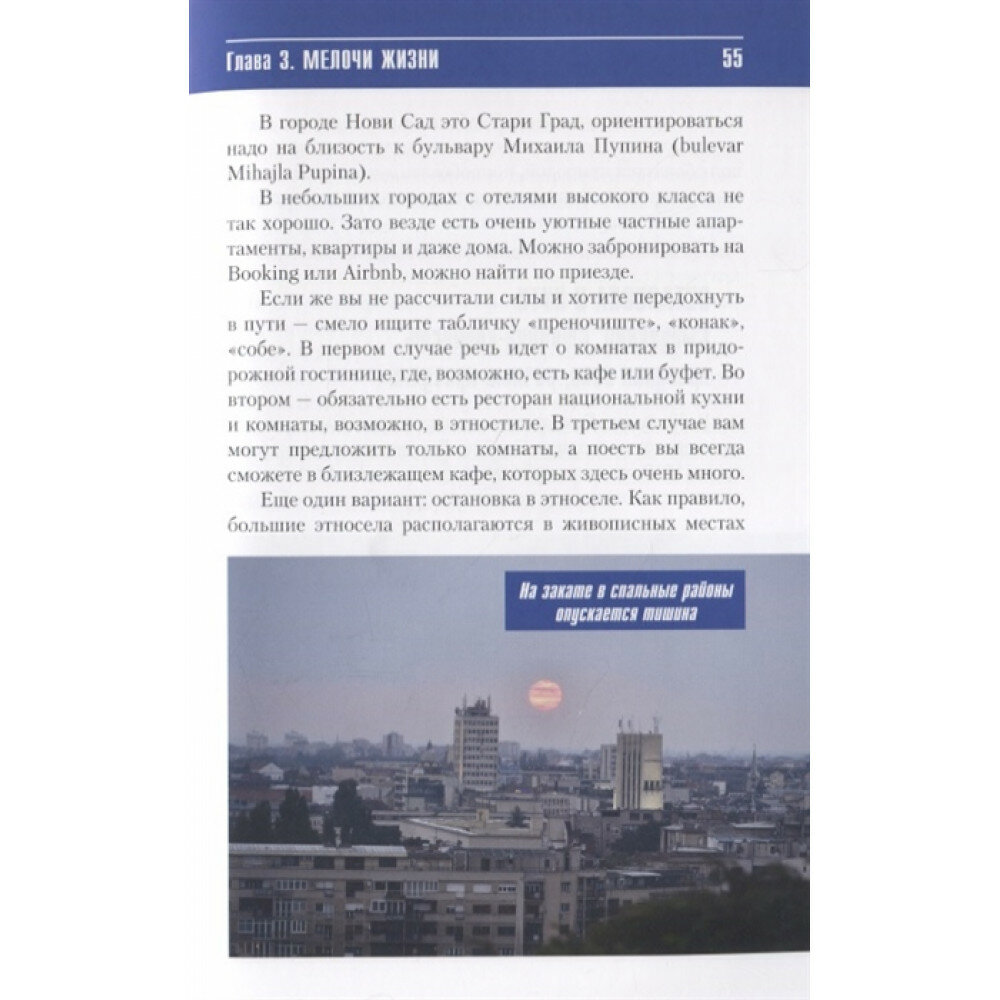 Откройте для себя Сербию — удивительную страну, где живет множество талантливых людей, которые говорят на языке, очень похожем на русский, но все же совершенно другом, которые умеют работать и отдыхать, защищать свою землю и любить, которые выстояли во множестве испытаний на протяжении многовековой истории. Они рады гостям, и вам, несомненно, стоит убедиться в этом самим.Конечно, так говорят о многих странах, но. Сербия — это Сербия, и она особенная. И притягательность у нес особенная. В этой книге, возможно, самом необычном путеводителе по маленькой республике на Балканах, авторы рассказывают о стране изнутри, на основе собственного опыта жизни в ней, а это всегда уникально и интересно. Они стремятся сделать ваше путешествие комфортным и увлекательным.Этот путеводитель, вызвавший огромный интерес у читателей при первом издании, был преподнесен президентом Сербии Александром Вучичем президенту Российской Федерации Владимиру Владимировичу Путину как свидетельство укрепления дружбы между нашими странами.