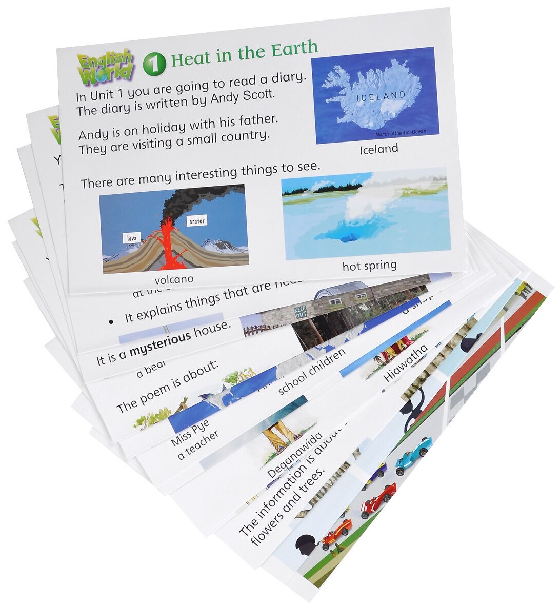 Twelve posters, one for each unit, accompany the course. These play a central role in the teaching of new vocabulary and the presentation of dialogues to promote fluency. Words are introduced with illustrations allowing the class to develop an understanding of them before they begin reading the text where the words are used in context.