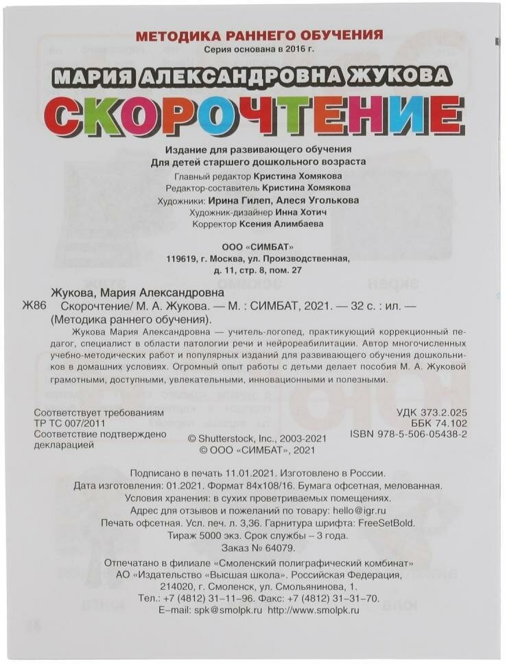 Книга Скорочтение. М. Жукова. Методика раннего обучения. 197х260 мм. 32 (Жукова Мария Александровна); Умка, 2021