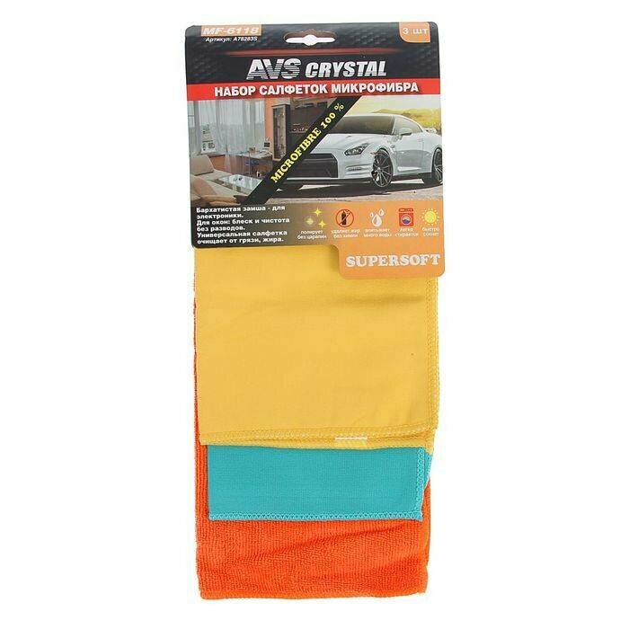 Особо мягкие салфетки из микрофибры AVS MF6118, обеспечивают хороший результат в поддержании чистоты в автомобиле и дома без применения химических очистителей.Набор салфеток, 3 шт.Размер: 30х35 см, 30х30 см, 30х25 смЦвет: голубой, бежевый, красныйпроизводитель: AVS, Китай.
