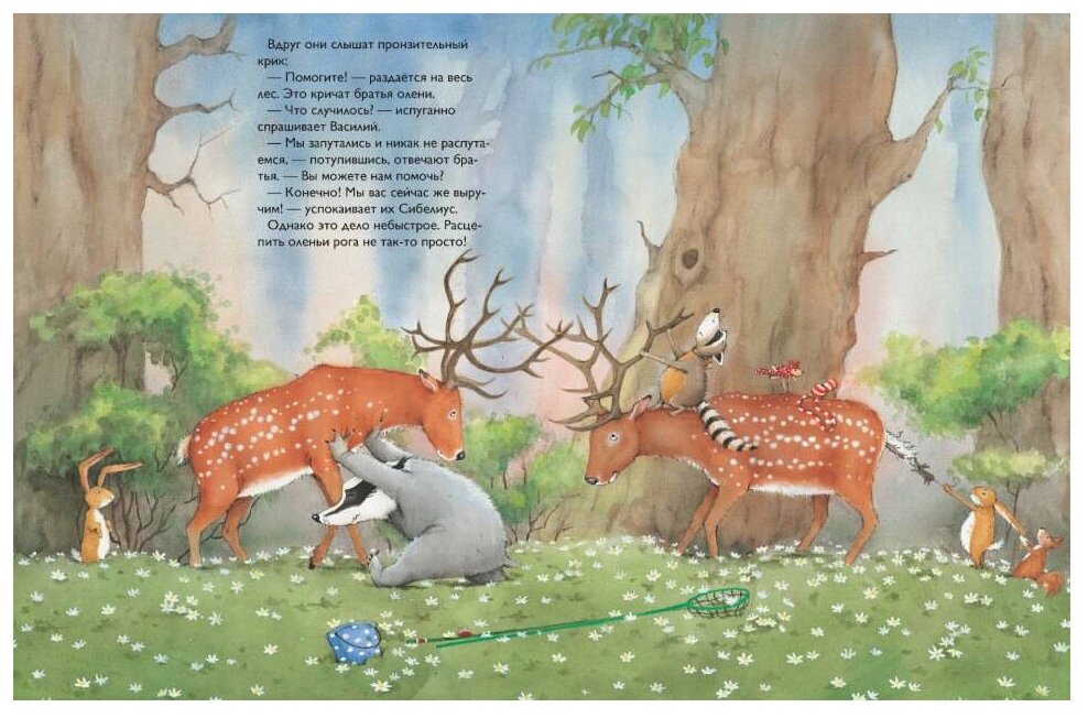 Замечательная история о дружбе и взаимопомощи! Как-то раз солнечным весенним утром енот Василий заглядывает в буфет и обнаруживает, что все припасы закончились. Неудивительно, что в животах у Василия и Сибелиуса урчит наперебой. Они отправляются на речку, чтобы наловить вкусной рыбы. Но по пути им приходится срочно выручать друзей: искать орехи для белок, помогать лисьему семейству на стройке и спасать совёнка. Наступает вечер, а Василию и Сибелиусу так и не удалось поесть. Однако дома их ждёт настоящий сюрприз… Для дошкольного возраста.