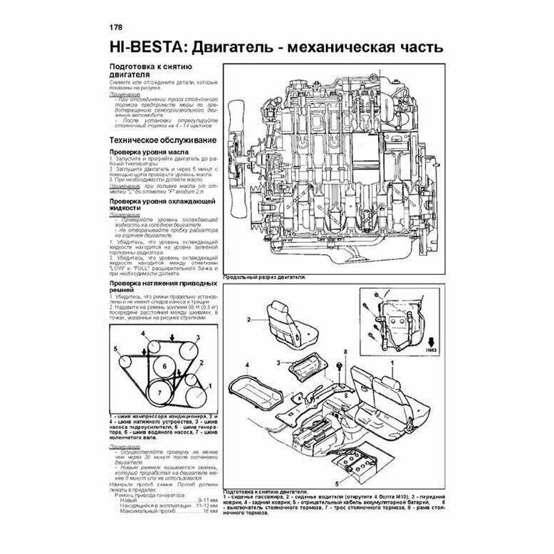В руководстве дается пошаговое описание процедур по эксплуатации, ремонту и техническому обслуживанию автомобилей Mazda Bongo (E2200) и KIA Besta, оборудованных дизельным двигателем 2,2 л и автомобилей KIA HI-Besta, оборудованных дизельным двигателем 2,7 л. Автомобиль KIA Besta является лицензионной копией (за исключением некоторых незначительных деталей), автомобиля Mazda Bongo (E2200), поэтому информация из данного руководства может быть использована для ремонта и технического обслуживания как автомобилей KIA, так и Mazda. Руководство содержит подробные сведения по диагностике, ремонту и регулировке систем автомобиля, а также перечень возможных неисправностей, методов их устранения, сопрягаемые размеры основных деталей и пределы их допустимого износа, рекомендуемые смазочные материалы и рабочие жидкости, представлены подробные электросхемы для различных вариантов комплектации.