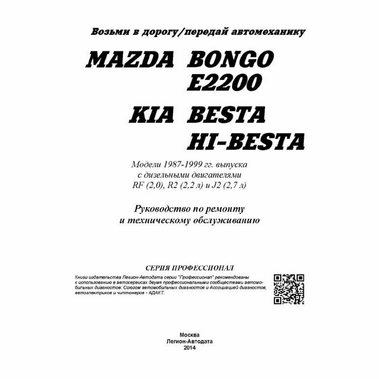 Книга Mazda Bongo / E2200 Kia Besta / Hi-Besta. Модели 1987-1999 года выпуска с дизель... (Коллектив авторов); Легион-Автодата, 2015