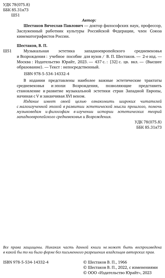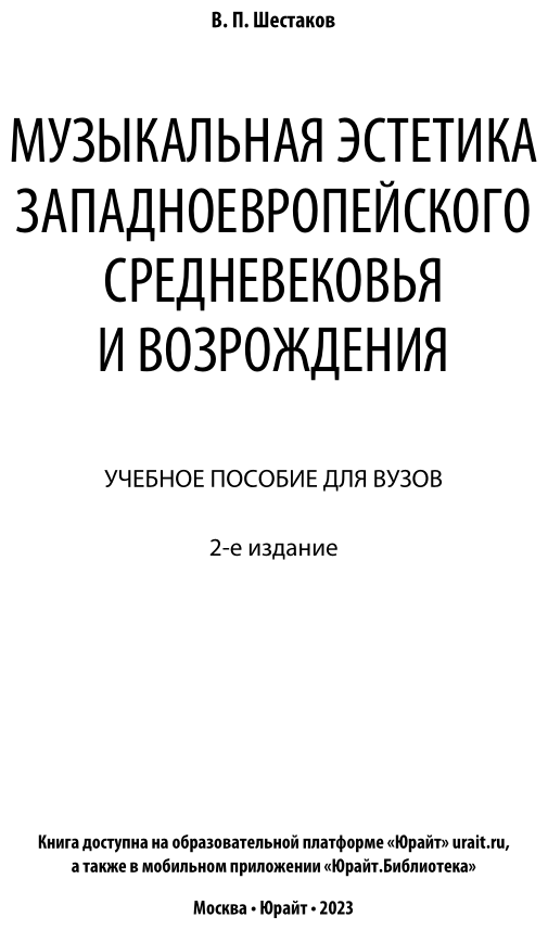 Книга Музыкальная эстетика западноевропейского средневековья и Возрождения (Вячеслав Павлович Шестаков); ЮРАЙТ, 2022