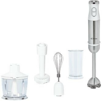 Погружной блендер Candy — устройство мощностью 1200 Вт с 21 скоростью работы. Управление электронное, интуитивно понятное и простое. Предусмотрен импульсный режим — на короткое время активирует максимальную мощность. Возможна колка льда в измельчителе (800 мл). Корпус выполнен из пластика. Погружная часть металлическая. Лезвие изготовлено из нержавеющей стали, за счет чего надолго сохраняет свою первоначальную остроту. Мерный стакан, входящий в комплект, обладает объемом 600 мл. Длина сетевого кабеля составляет 1 м. Вес устройства при размерах 41х6,5х6,5 см — 1,9 кг.