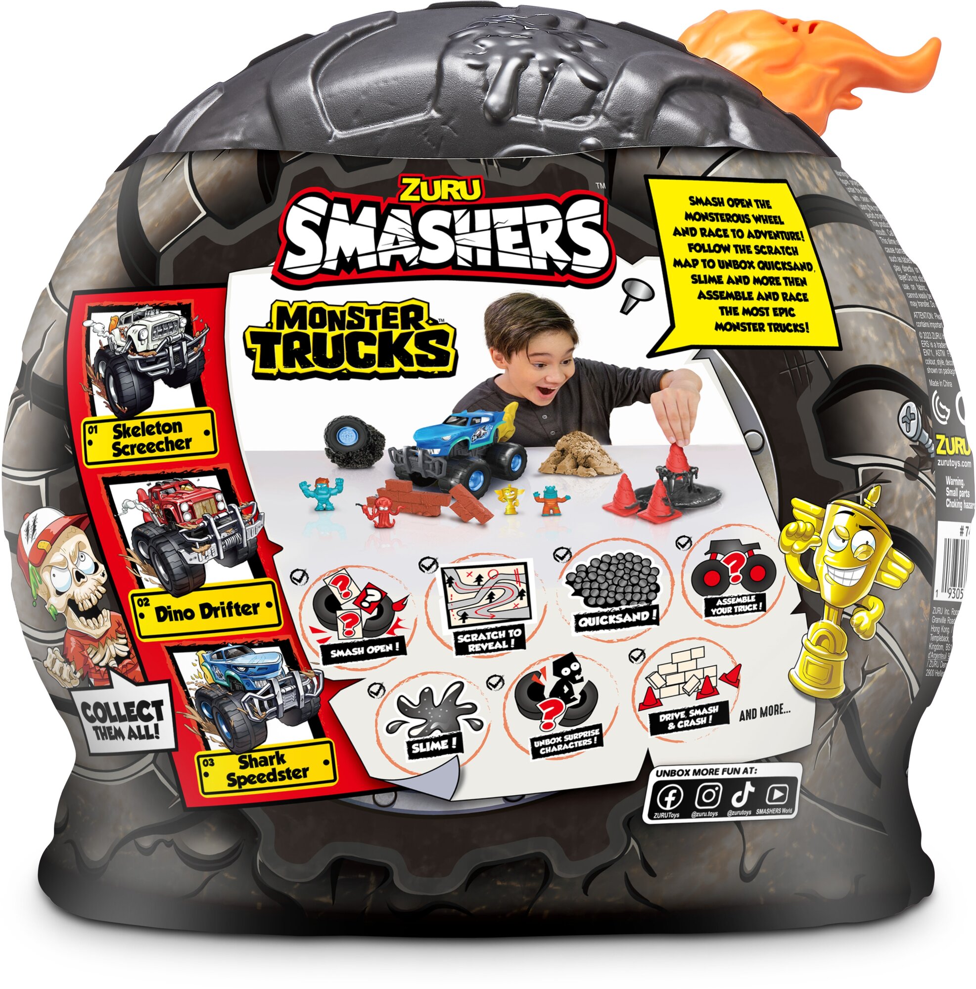 | Состав набора | капсула-колесо, 1 машина-монстр, кинетический песок, слайм, 3 стены - препятствия, 3 дорожных конуса, 2 колеса Mini Smash, 2 фигурки персонажей, 1 фигурка водителя, 1 трофей, 3 наклейки, прикрепляющееся "пламя", 1 скретч-карта, инструкция, гид коллекционера |
