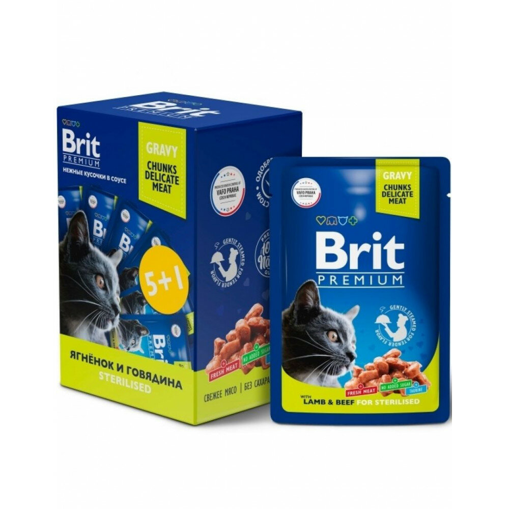Корм влажный для стерилизованных кошек Brit Premium Набор Ягненок и говядина в соусе 5+1 кормушка 510 г