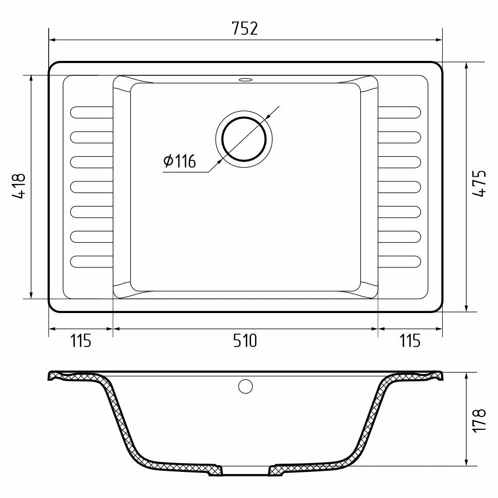 Мойка кухонная GranFest 752х475 см темно-серая Quarz 71
