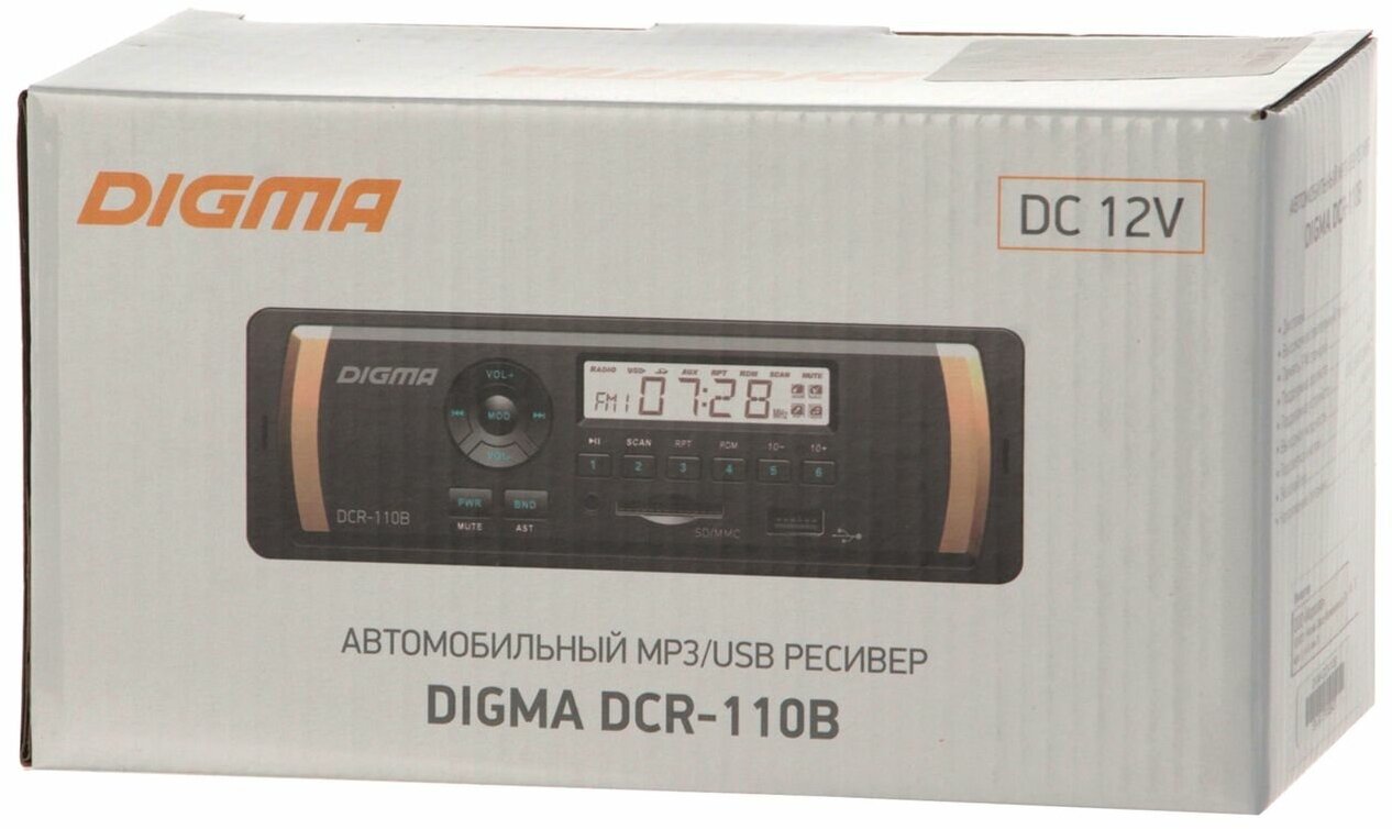 Автомагнитола Digma 1DIN 4x45Вт DCR-110B