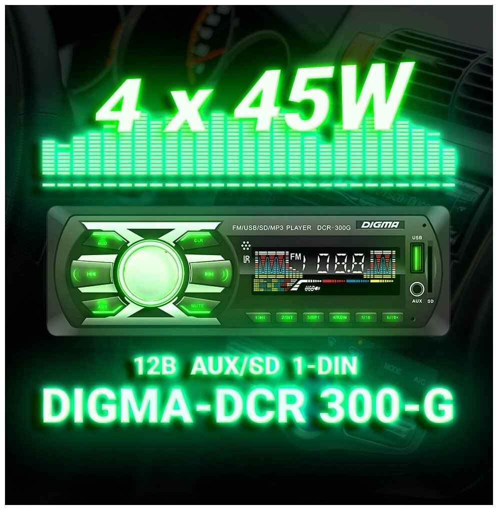 Автомагнитола Digma 1DIN 4x45Вт DCR-300G