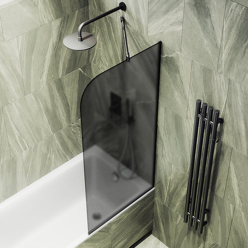 Шторка на ванну Maybah Glass 44х140 см графит матовый профиль черный MGV-133-6у