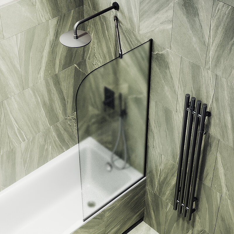 Шторка на ванну Maybah Glass 74х140 см сатин профиль черный MGV-149-6у