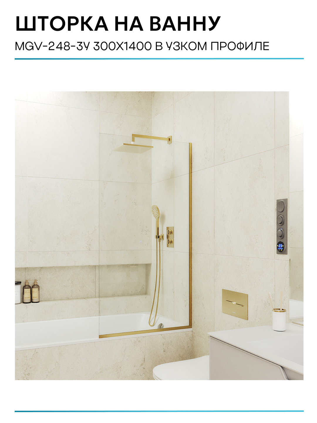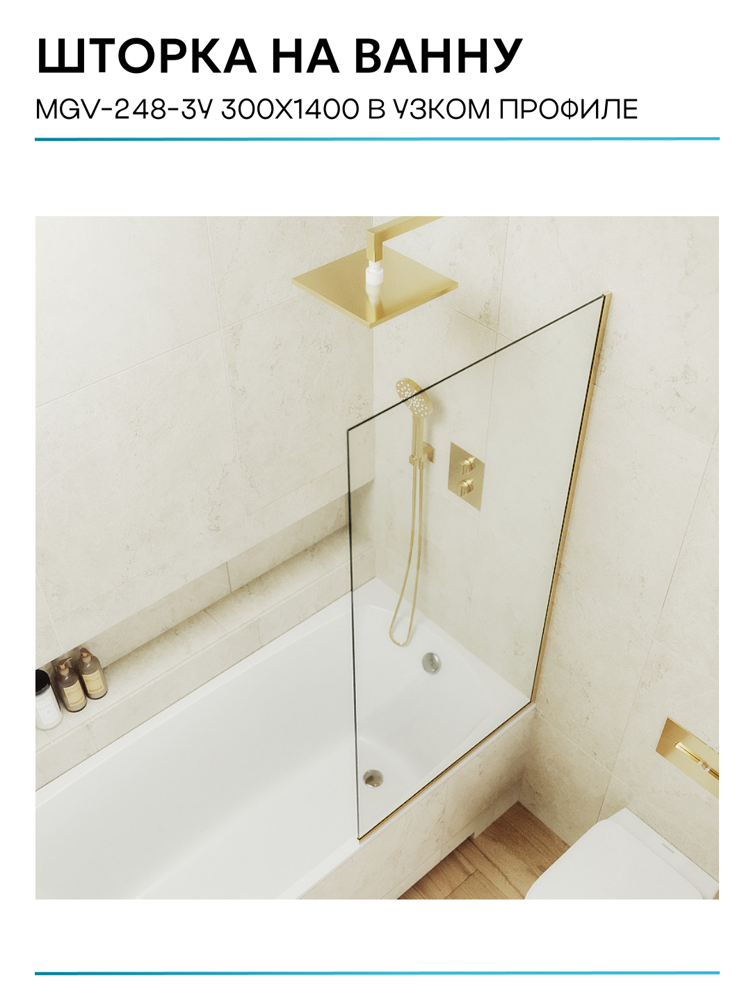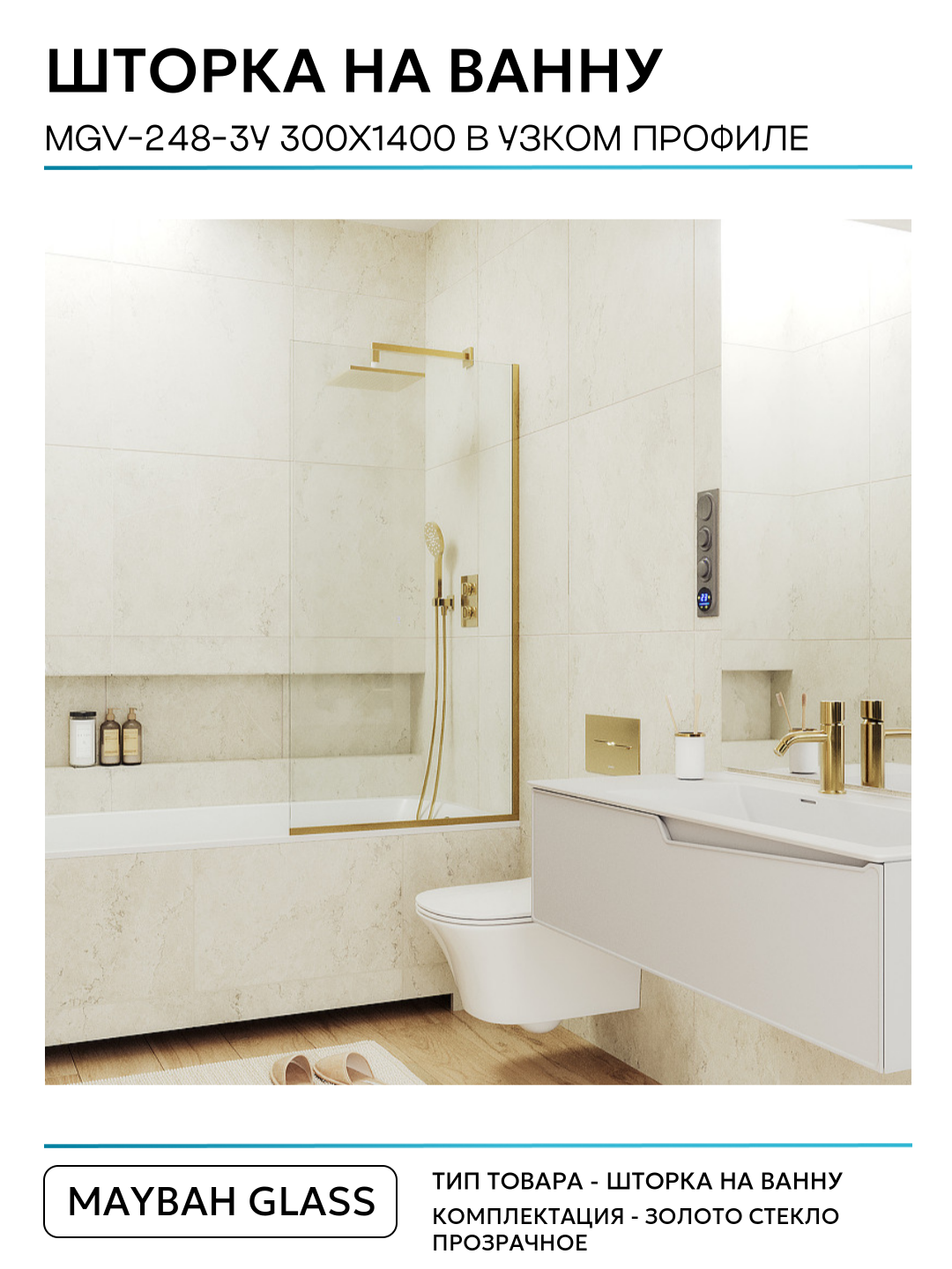 Сервис сравнения цен СкидкаГИД предлагает сравнить цены на товар «Шторка на ванну Maybah Glass 30х140 см прозрачный профиль золото MGV-248-3у»