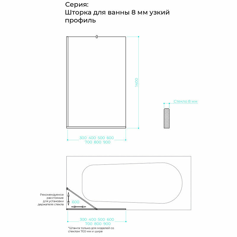 - Исполнение полотна шторки: сатиновое закаленное стекло, толщиной 8 мм.