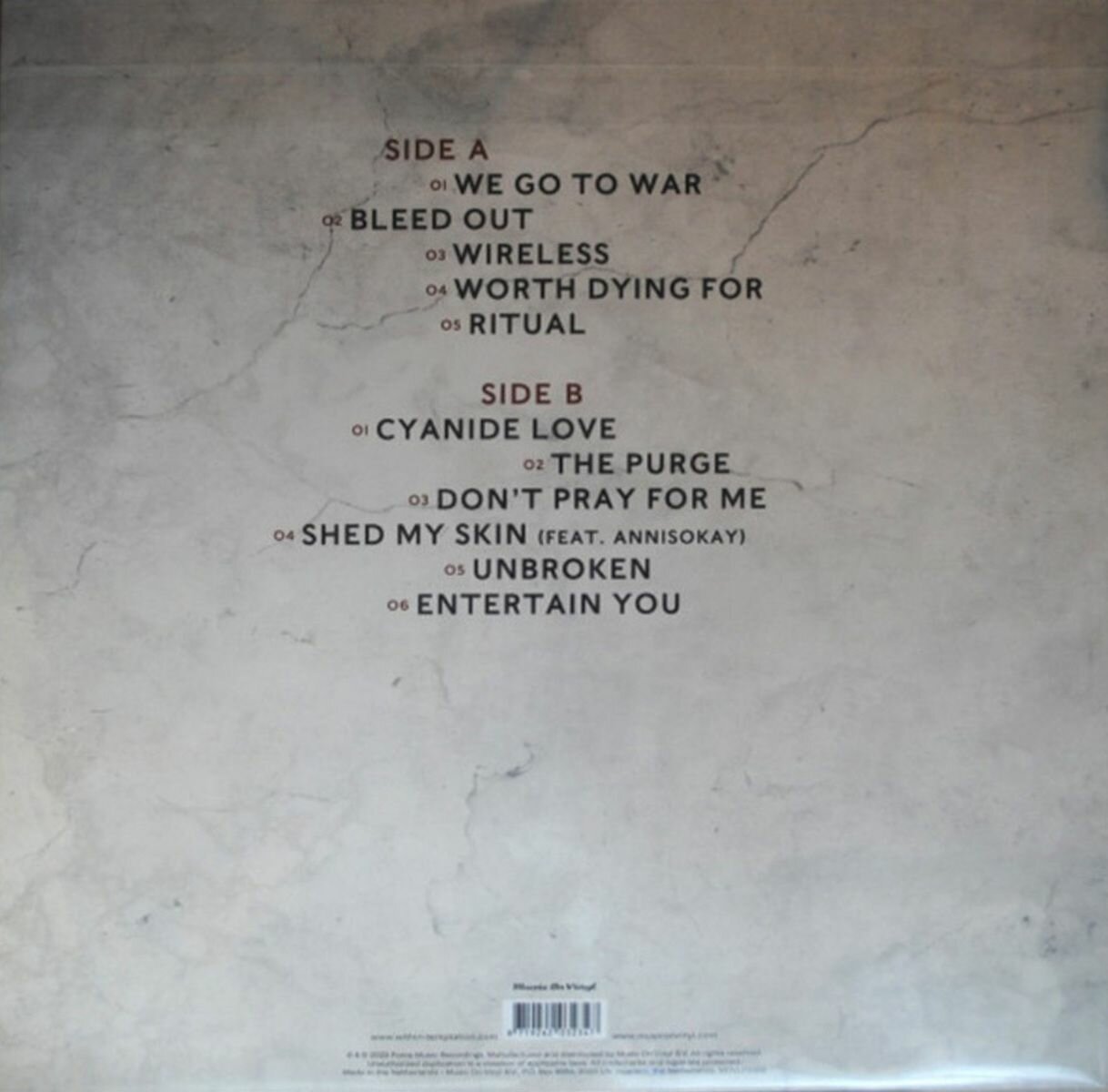 Bleed Out — восьмой студийный альбом голландской симфо-метал группы Within Temptation. Он был выпущен 20 октября 2023 г. Он был спродюсирован их постоянным продюсером Дэниелом Гибсоном, а также Матиасом Тикеном и самой группой. Альбом является первым, который группа выпустила без поддержки крупного звукозаписывающего лейбла. В музыкальном плане альбом включает в себя элементы симфонического металла, готического металла, металкора и джента. Трек-лист: A1. We Go To War A2. Bleed Out A3. Wireless A4. Worth Dying For A5. Ritual B1. Cyanide Love B2. The Purge B3. Don’t Pray For Me B4. Shed My Skin B5. Unbroken B6. Entertain You Within Temptation — нидерландская симфоник-метал-группа, была основана в 1996 году гитаристом Робертом Вестерхольтом и вокалисткой Шарон ден Адель. Музыкальный стиль Within Temptation определяют как симфоник-метал, а на ранних записях — готик-метал. Группа приобрела известность на андеграундной сцене уже после выхода первого альбома Enter в 1997 году. Широкой аудитории Within Temptation стали известны благодаря синглу "Ice Queen" из альбома "Mother Earth" 2001 года, который достиг 2 строчки в нидерландских чартах. После этого группа выигрывала премию "Conamus" 4 года подряд.