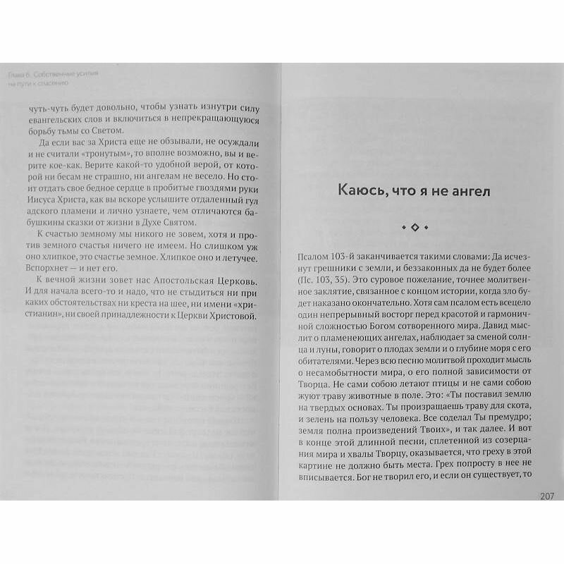 Книга протоиерея Андрея Ткачева «Каюсь, что я не ангел» — это практическое указание по преодолению специфических соблазнов нашего времени, когда грех принимается за норму, а безгрешие — за странность и опасную болезнь, когда размывается традиционный образ жизни и идет война против нравственности. Как выжить православному христианину в этом мире, где он окружен агрессивной средой безбожия?Книга отца Андрея дарит надежду всем находящимся на грани уныния: есть инструменты духовной борьбы, которые весьма эффективны в этих условиях. Соблюдая определенные правила безопасности и совершая особенные, незаметные для мира подвиги, можно уберечь свою душу от ущерба и сохранить ее для Бога и вечности.