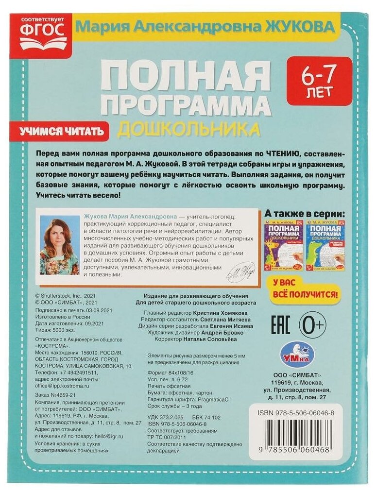 Книга Полная программа дошкольника. Учимся читать. 6-7 лет Жукова М.А (Митяева С. -редактор-составитель); Умка, 2022