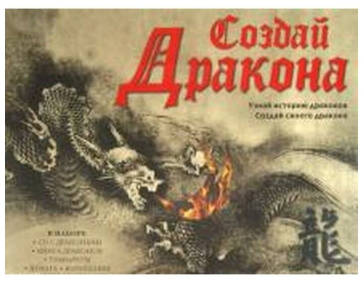 Драконы очаровывали человечество. Тысячелетиями люди придумывали сказания о драконах. Представляем Вам самые известные истории об этих мифических существах. Вы можете не только читать истории, при помощи этой книги Вы можете создать своего дракона. - Для тех, кто хочет создать своего дракона. - Все для создания драконов: от рисунка до оригами. - Самые известные истории и мифы о драконах. В наборе: CD с драконами, книга драконов, трафареты, бумага, карандаши.