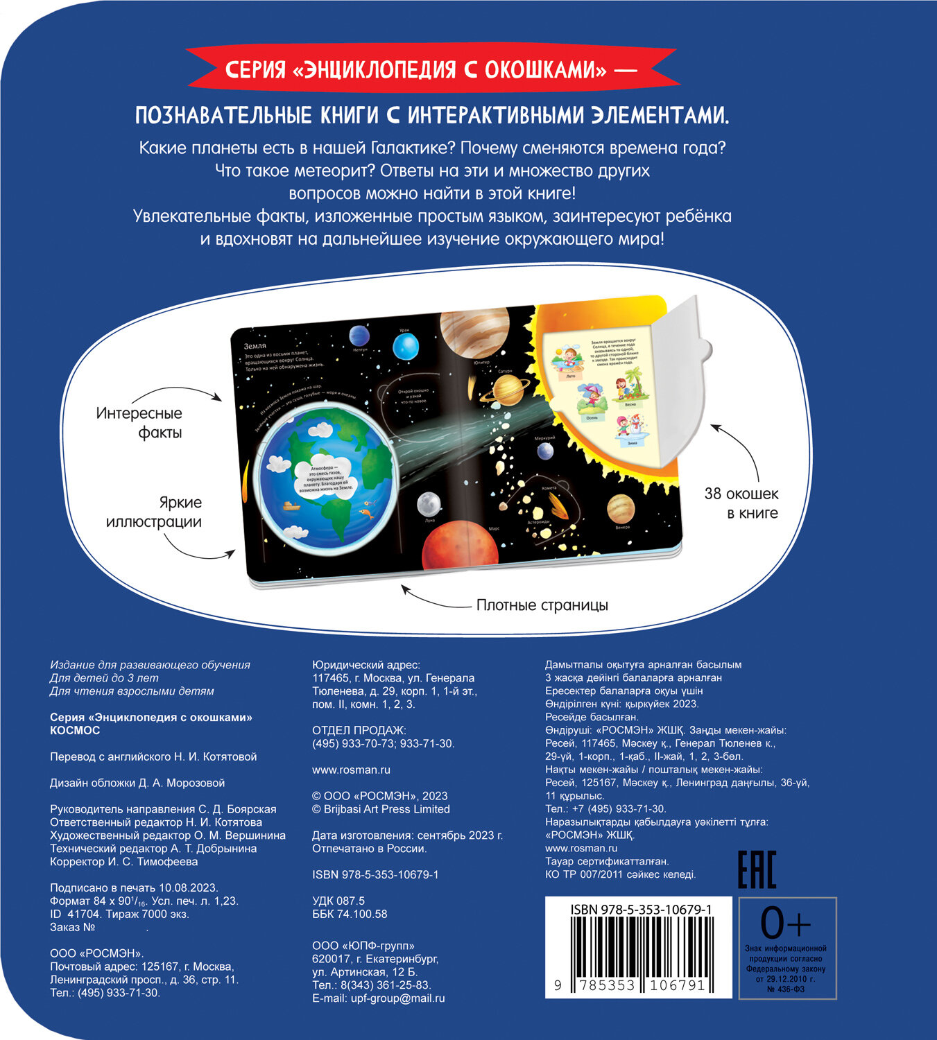 Серия «Энциклопедия с окошками» — это познавательные книги с интерактивными элементами.Какие планеты есть в нашей галактике? Почему сменяются времена года? Что такое метеорит? Ответы на эти и множество других вопросов можно найти в этой книге! Увлекательные факты, изложенные простым языком, заинтересуют ребенка и вдохновят на дальнейшее изучение окружающего мира!
